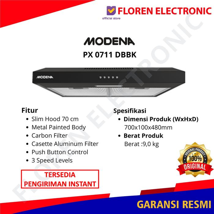Modena Cooker Hood Slim 70cm PX 0711 DBBK Penghisap Asap Dapur GARANSI RESMI MODENA INDONESIA murah