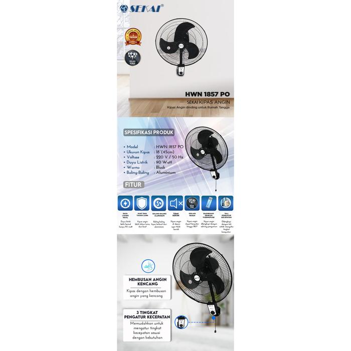 SEKAI Kipas Angin Perfoma Tinggi HWN1857PO Wall Fan 18Inch HWN-1857PO
