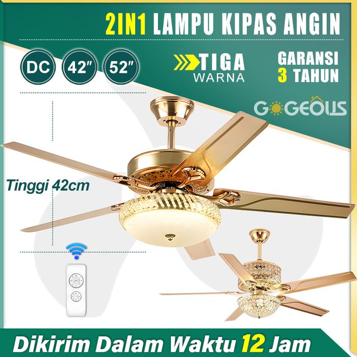 Kipas Angin Lampu Gantung Plafon Jarak Jauh 2IN1 Gaya Retro 42/52 inci Kipas Angin Plafon Dengan