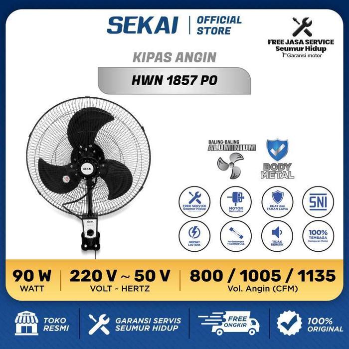 Sekai Kipas Angin Listrik Dinding Tornado HWN1857PO 18 Inch Baling-baling Metal 90 Watt 3 Kecepatan