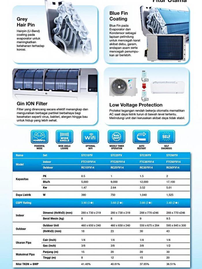 AC DAIKIN 1/2PK FTC15YV14 / FTC15 / 15YV / FTC 15YV AC Split Standard 0.5PK R32 - Indonesia Blue Fin