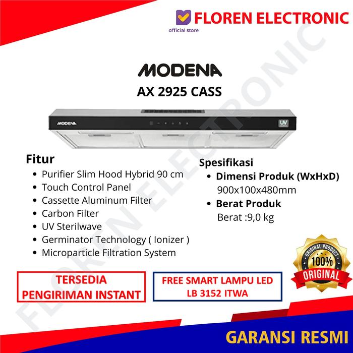 Modena AX 2925 CASS / AX2925CASS / 2925CASS Purifier Hood Hybrid 90cm Stainless Steel Slim Desain