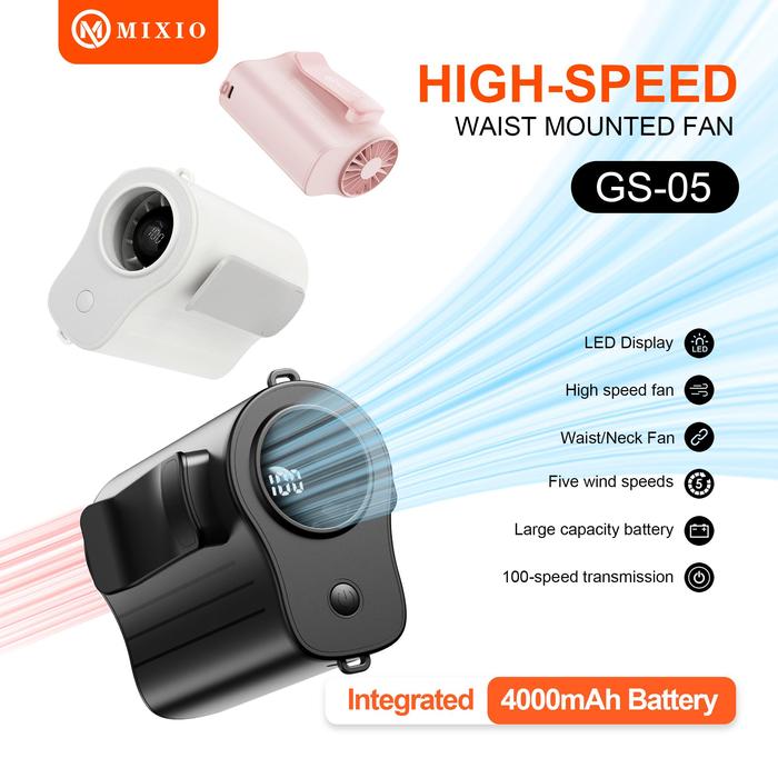 MIXIO GS-05 Kipas Angin Pinggang Turbo Portable (High Speed 13500RPM)