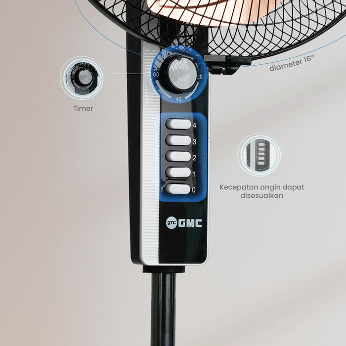 GMC Kipas Angin 326 Seri Besi Kipas Lantai 16", 55W, Baling-Baling Kuat Semua Warna