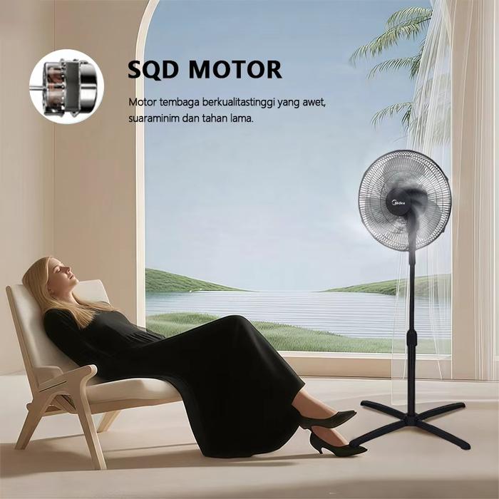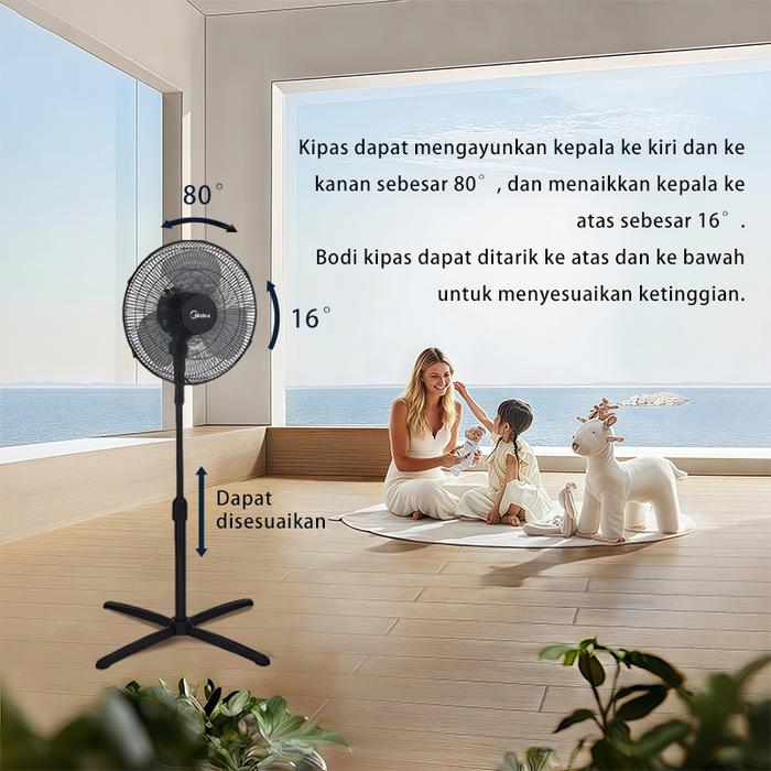 Midea Kipas Angin Berdiri 16 inch MFS160M0BDW Motor SQD Tahan Lama 3 Pengaturan Angin & Tinggi Bisa