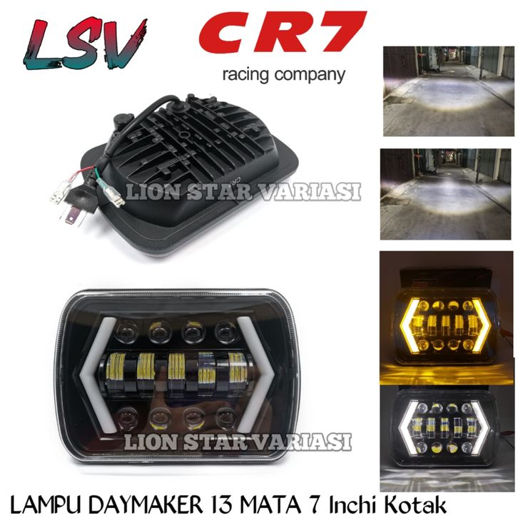 Lampu Depan 7 Inch 13 LED Model Kotak Headlamp Daimaker 5x7 Inch Motor Mobil Universal JEEP KATANA