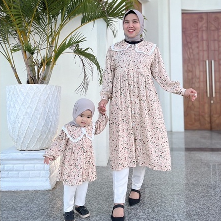 Kalsandfrey Hannah Tunik Couple Mom And Kids Baju Kembar Mama Anak Perempuan Bahan Premium Sarimbit