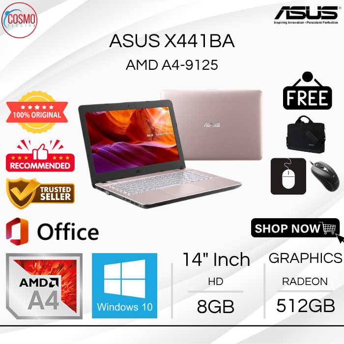 ASUS X441BA AMD A4-9125 | 8GB RAM 512GB SSD | 14 INCH WINDOWS 10 + OFFICE - BONUS TAS LAPTOP, MOUSE, MOUSE PAD