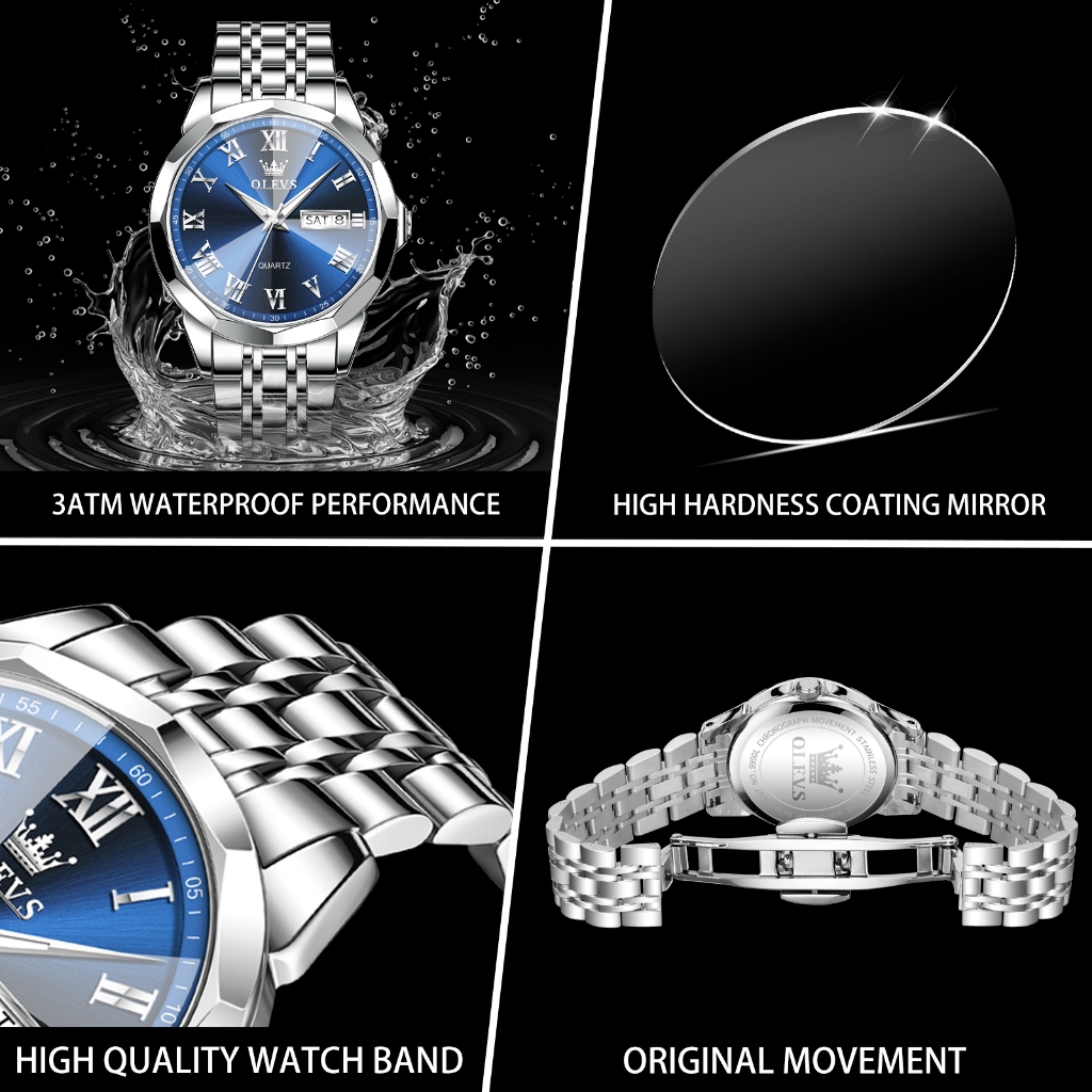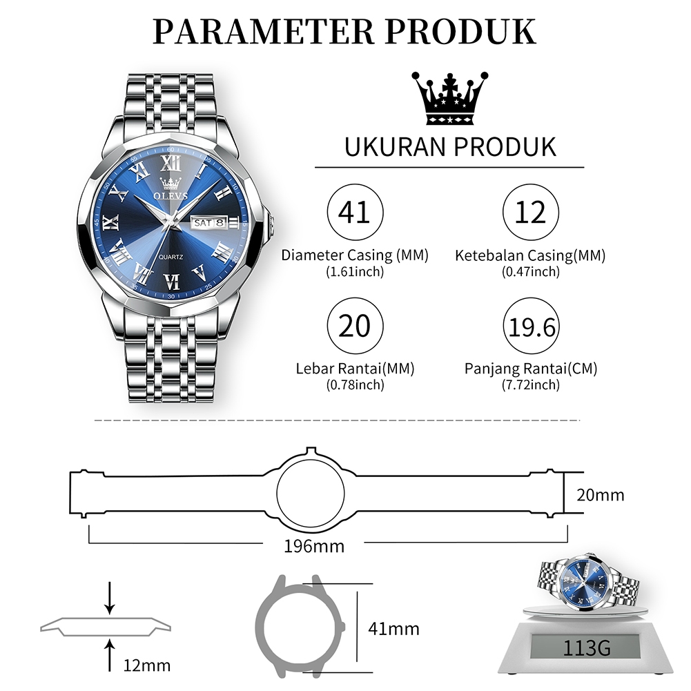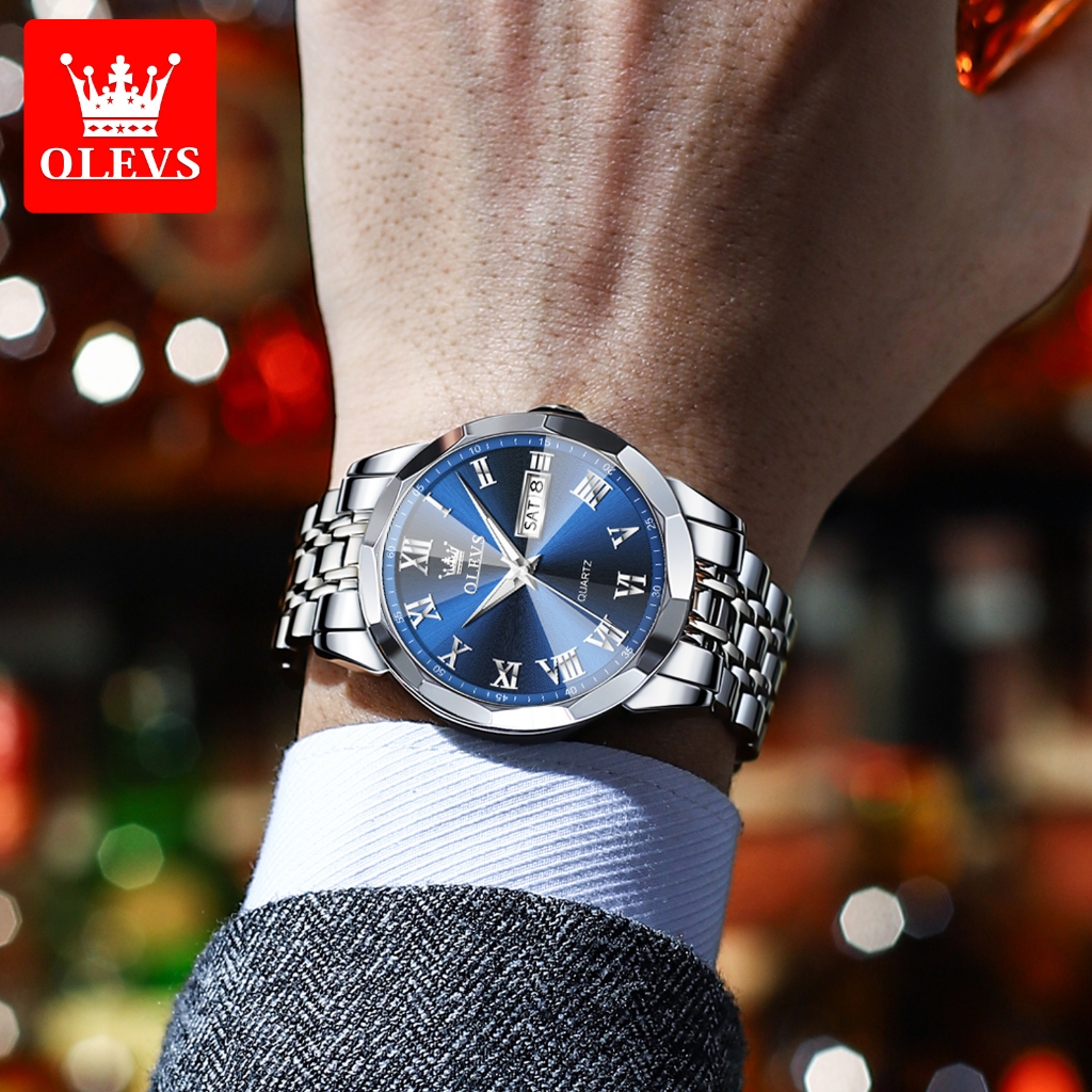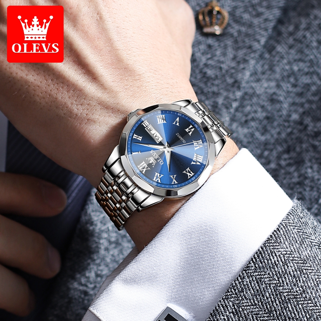OLEVS Jam Tangan Pria Original Anti Air Bisnis Analog Kalender Jam Tangan Cowok Stainless Steel Strap Luminous Quartz Men Watches 9990