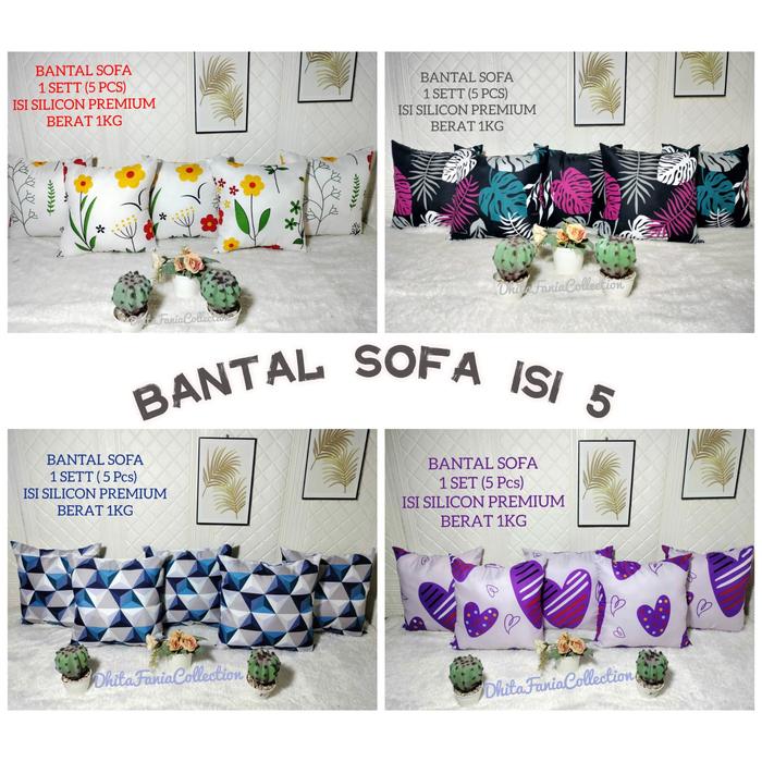 BANTAL SOFA RUANG TAMU 1 SETT ISI 5PCS KAIN KATUN - KOTAK HITAM, BANTAL SOFA 5PCS
