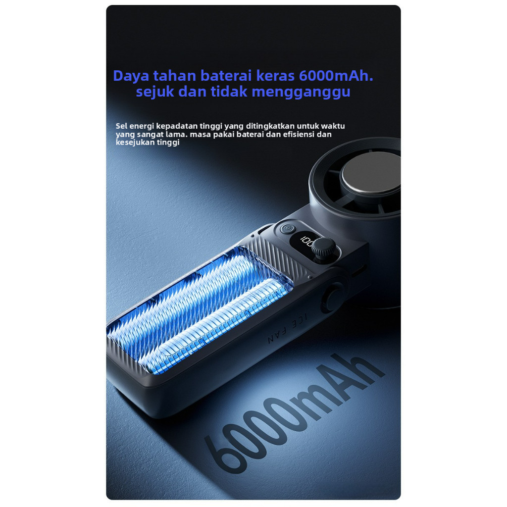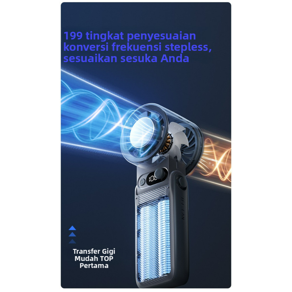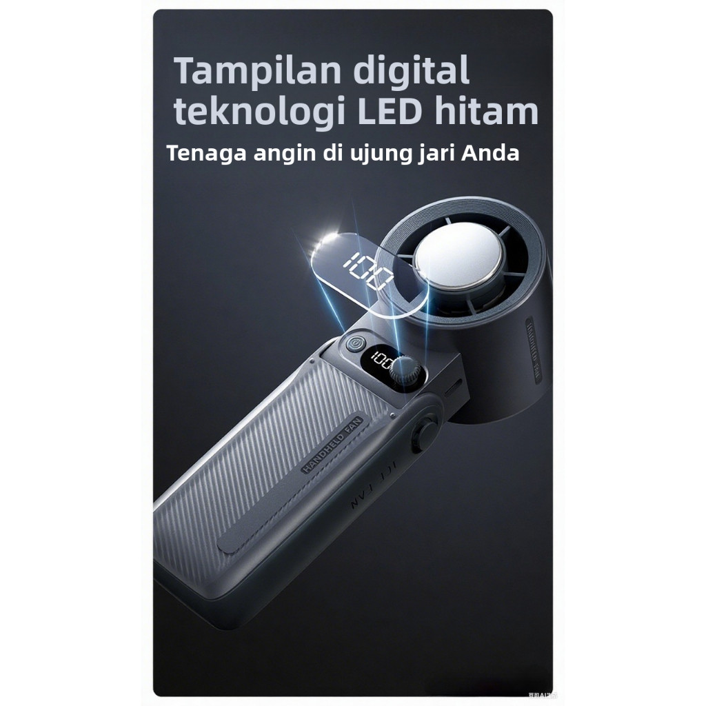 [] Kipas Angin Portable USB Tahan Lama 6000mAh 30000RPM Kipas Pendingin Portable Lipat Leher 199-Speed Wind Adjustable Turbo Fan LED Display Handheld Fan Mini