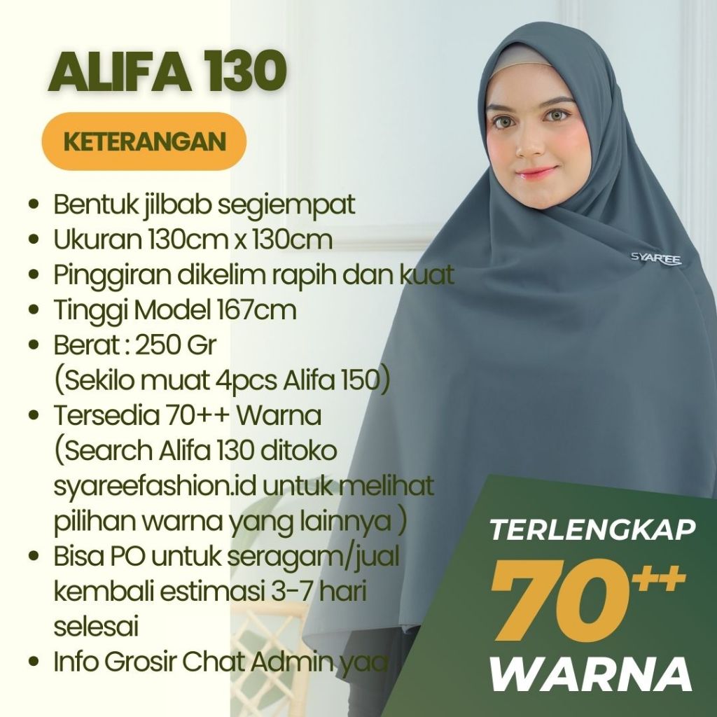 Alifa | Jilbab Kerudung Segi Empat Syari Jumbo Wolfis Premium Syaree Fashion 120x120 130x130 150x150