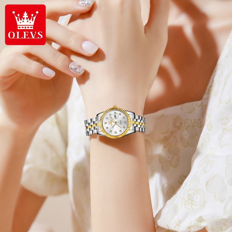 OLEVS Jam Tangan Wanita Anti Air Original Stainless Steel Kecil Korea Analog Tahan Air Putih Gold Hitam Women Watch Model 5526