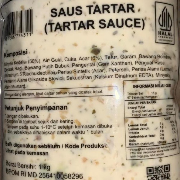 Kewpie Saus Tartar Sauce 1 Kg Halal