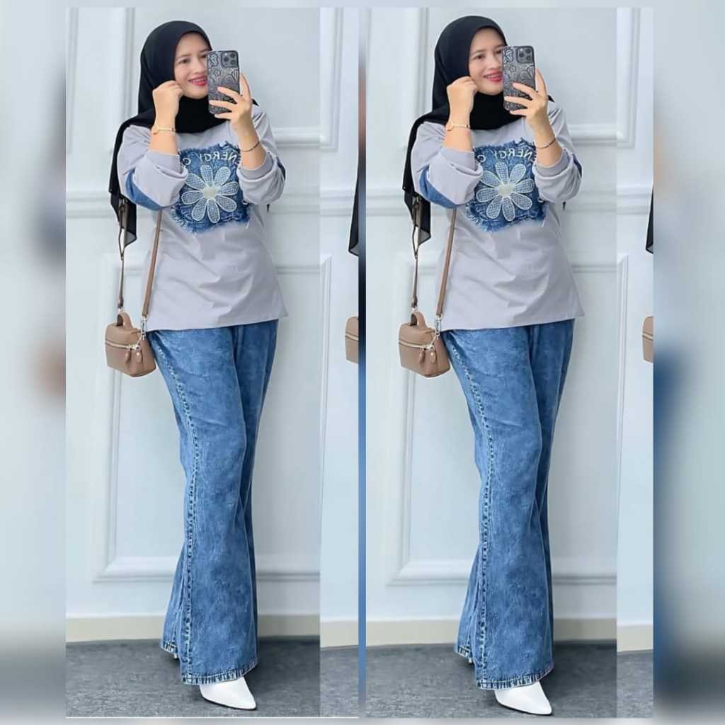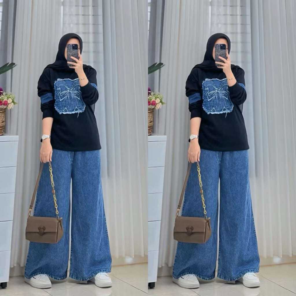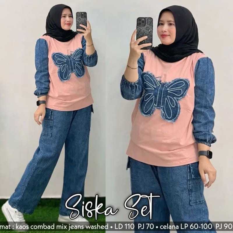 VITO set ukuran xl , xxl suska set setelan wanita kekinian , setelan jeans mix combed