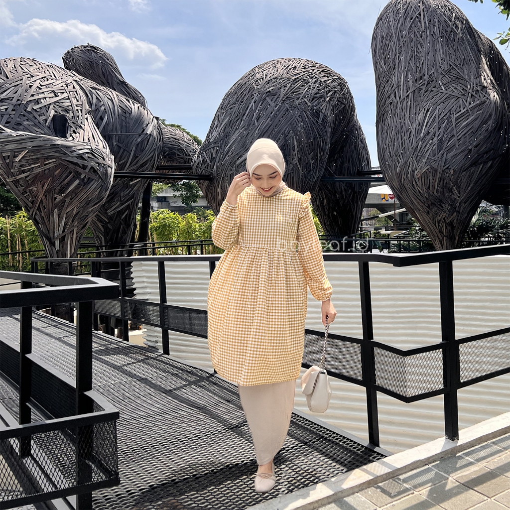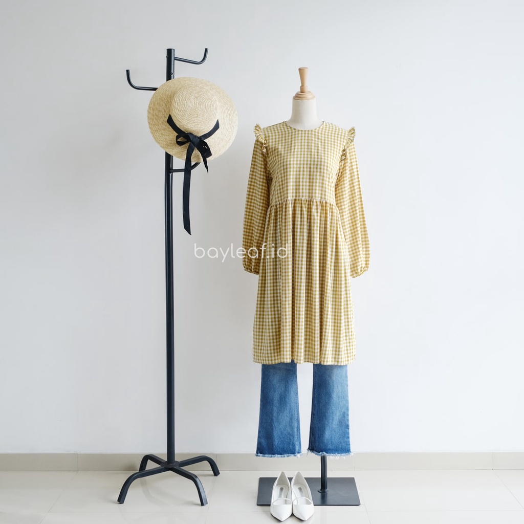 Bayleaf.id Fabyla Plaid Tunik Lengan Panjang / Atasan Tunik Wanita Motif Kotak