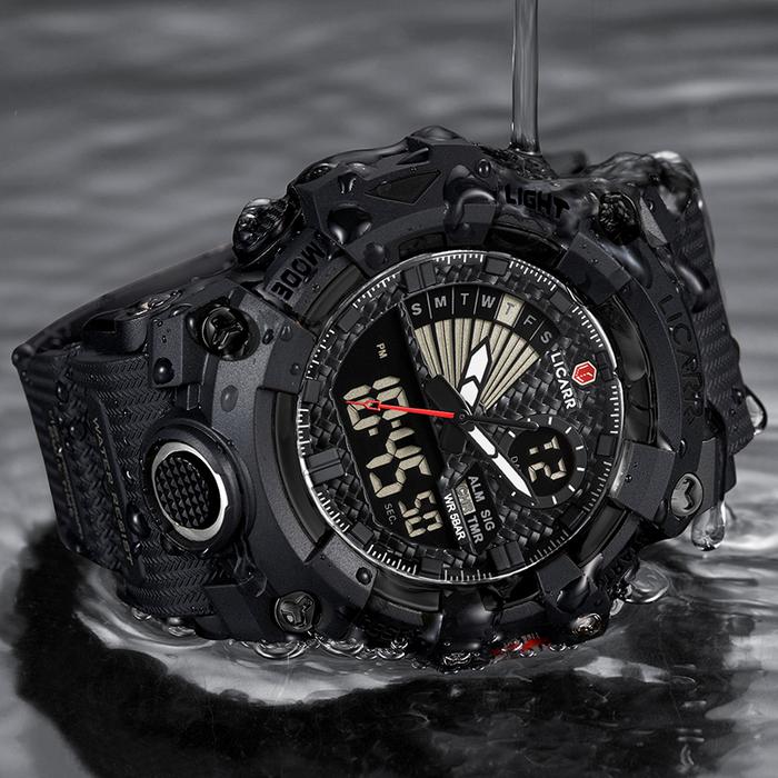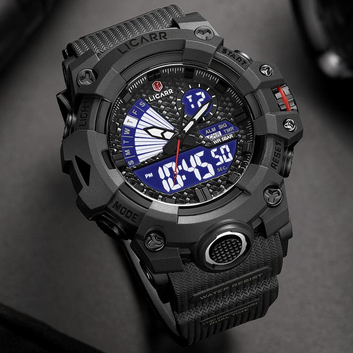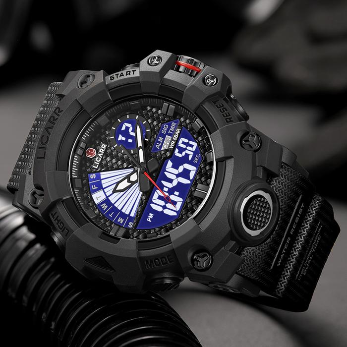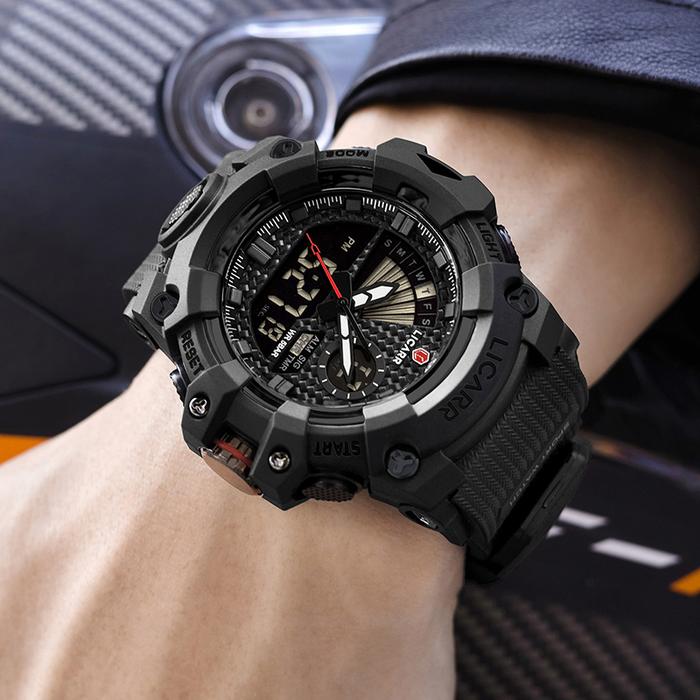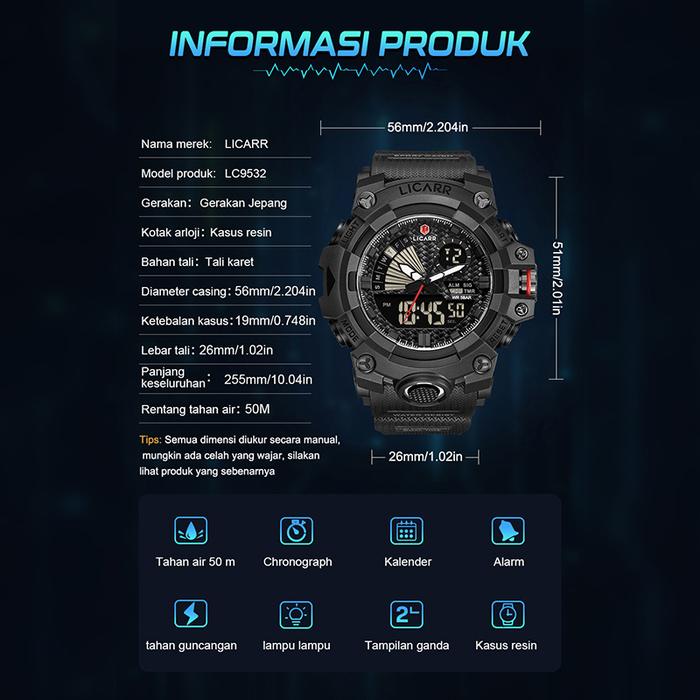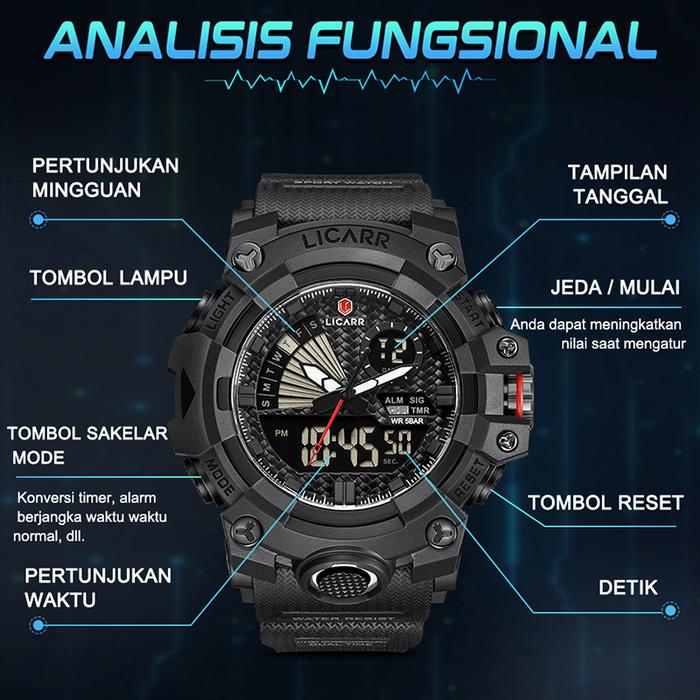 LICARR JAM TANGAN PRIA MEREK FASHION ANALOG DIGITAL SANTAI KUARSA ANTI AIR OLAHRAGA MULTIFUNGSI JAM TANGAN COWOK ORIGINAL 9532 - HITAM