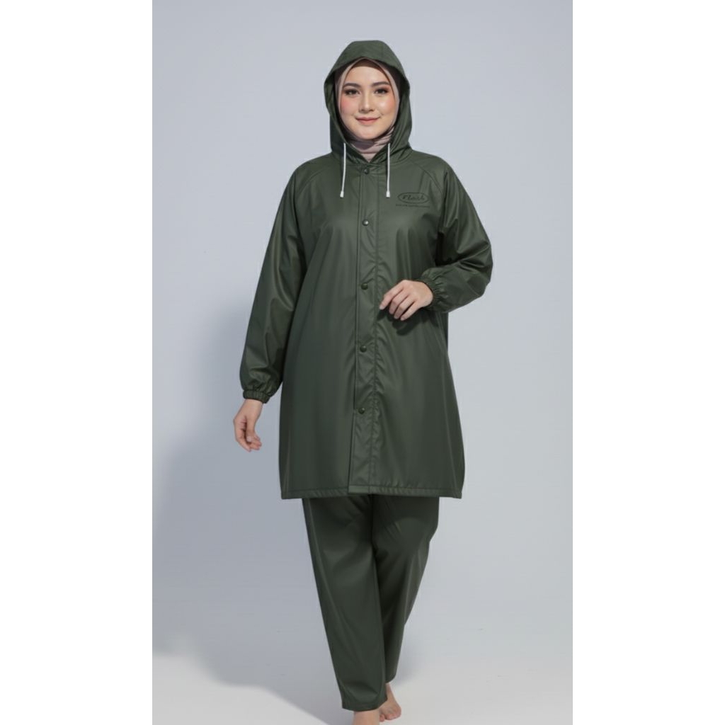 FLASH Jas Hujan SETELAN Pria Wanita Dewasa - Bahan PVC Premium Tebal kuat Elastis