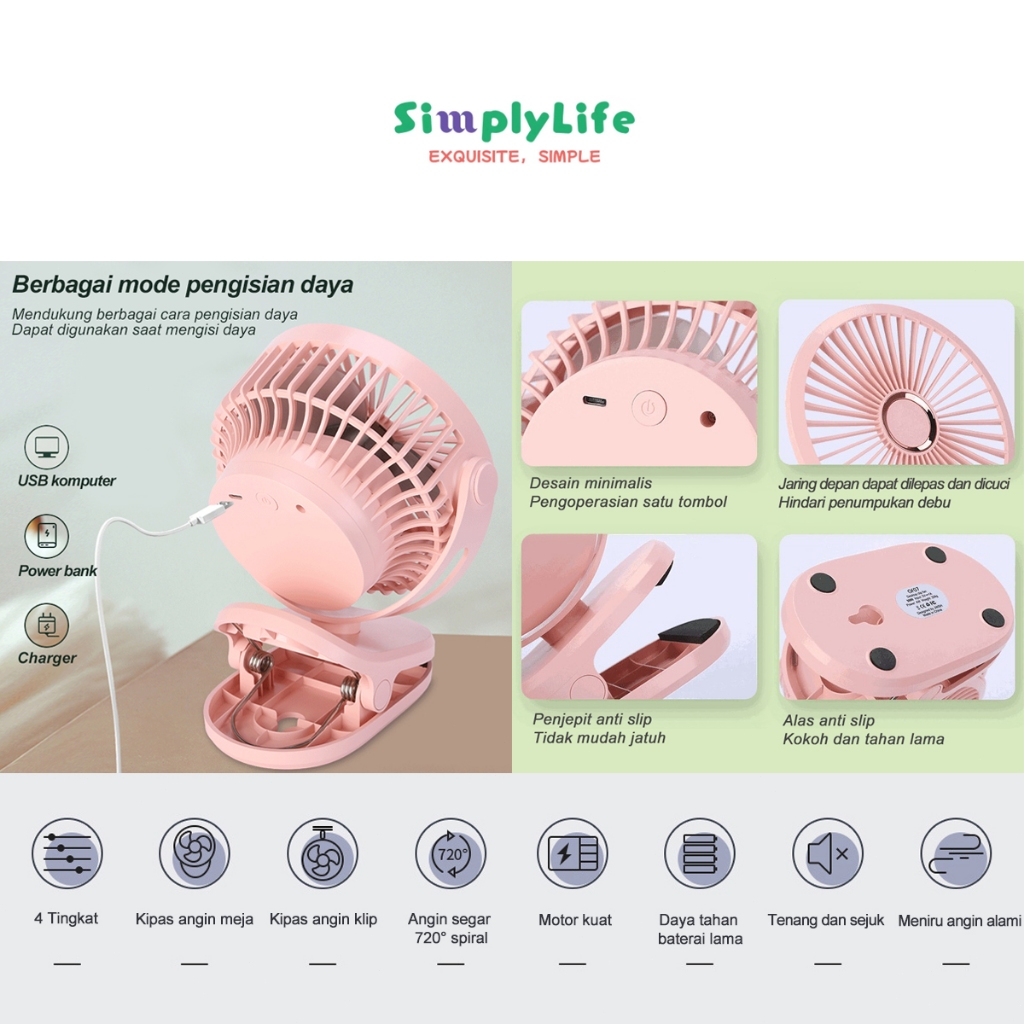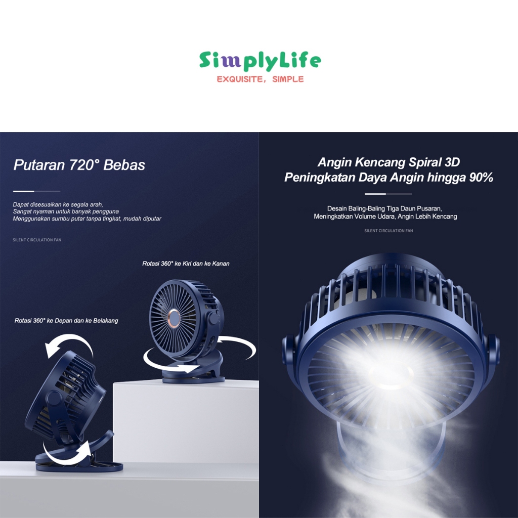 Simple Life - 15000mAh Kipas Angin USB Clip Mini Fan Rotating Kipas Angin Meja Mini Jepit Portable Kipas Angin Meja Portable