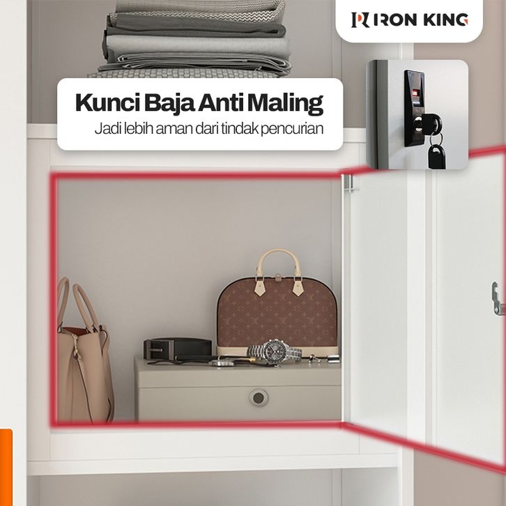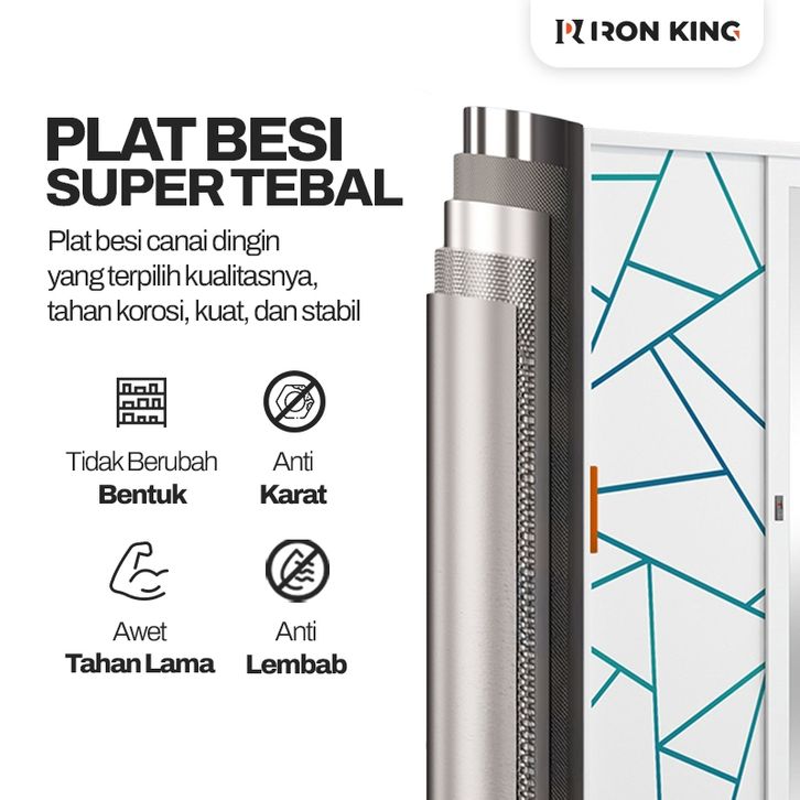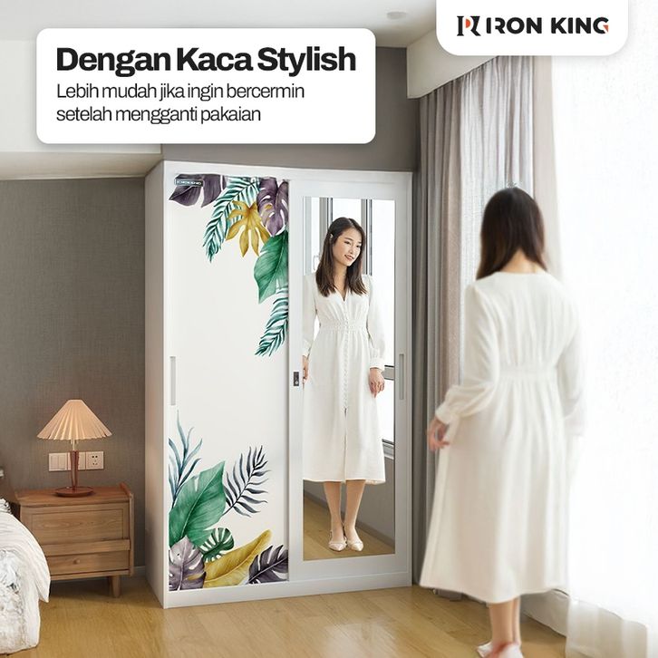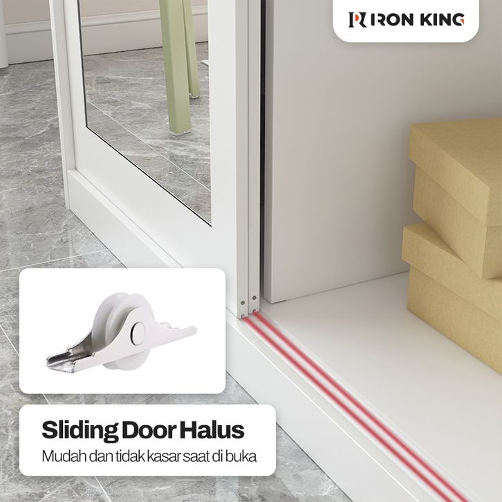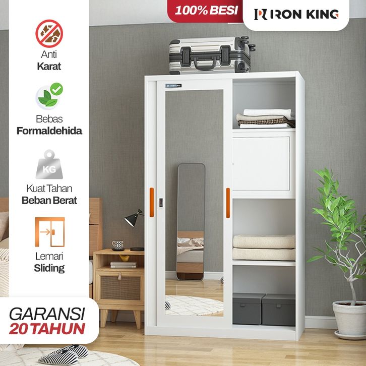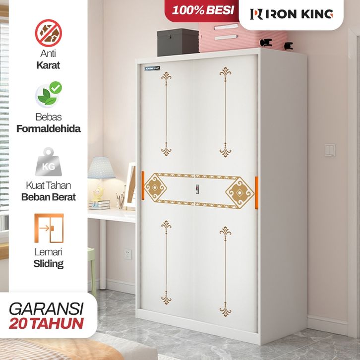 Lemari Pakaian Besi Sliding 2 Pintu Iron King - Lemari Baju Minimalis Full Besi Anti Rayap & Anti Jamur