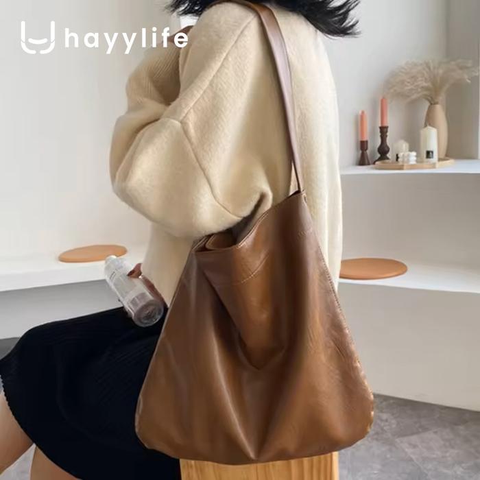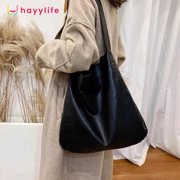 HAYYLIFE SHOULDER TOTEBAG WANITA BAHAN KULIT - FR-FAA7007 - HITAM