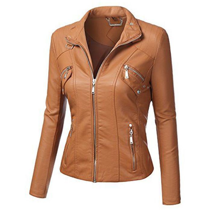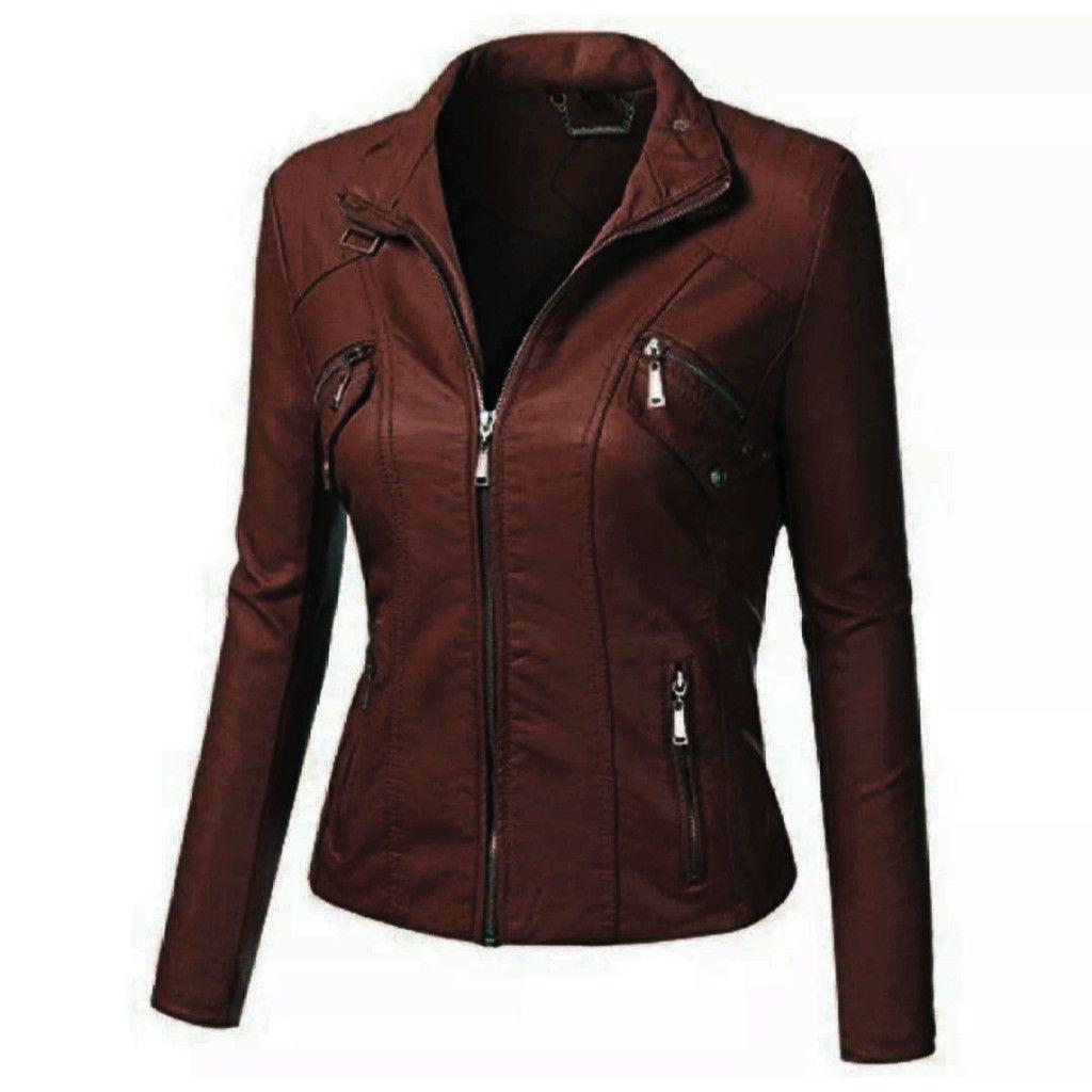 jaket semi kulit sintetis wanita casual cocok untuk berkendara motor