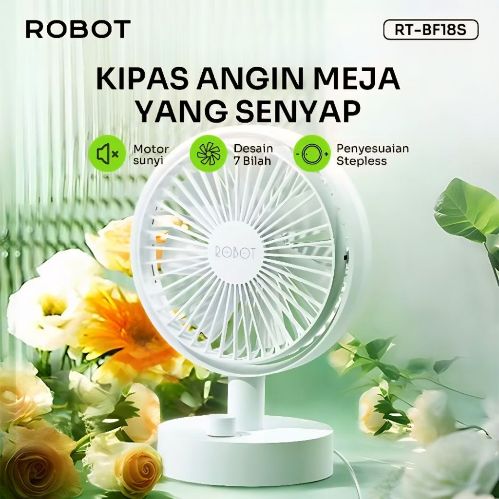[ROBOT RT-BF18S] Kipas Angin Meja Mini USB 7 Blade Super Quiet Portable Desktop Fan Model Terbaru Hemat Daya Untuk Rumah Kantor Meja Belajar Kuat Angin Tidak Berisik Tanpa Baterai Kualitas Original