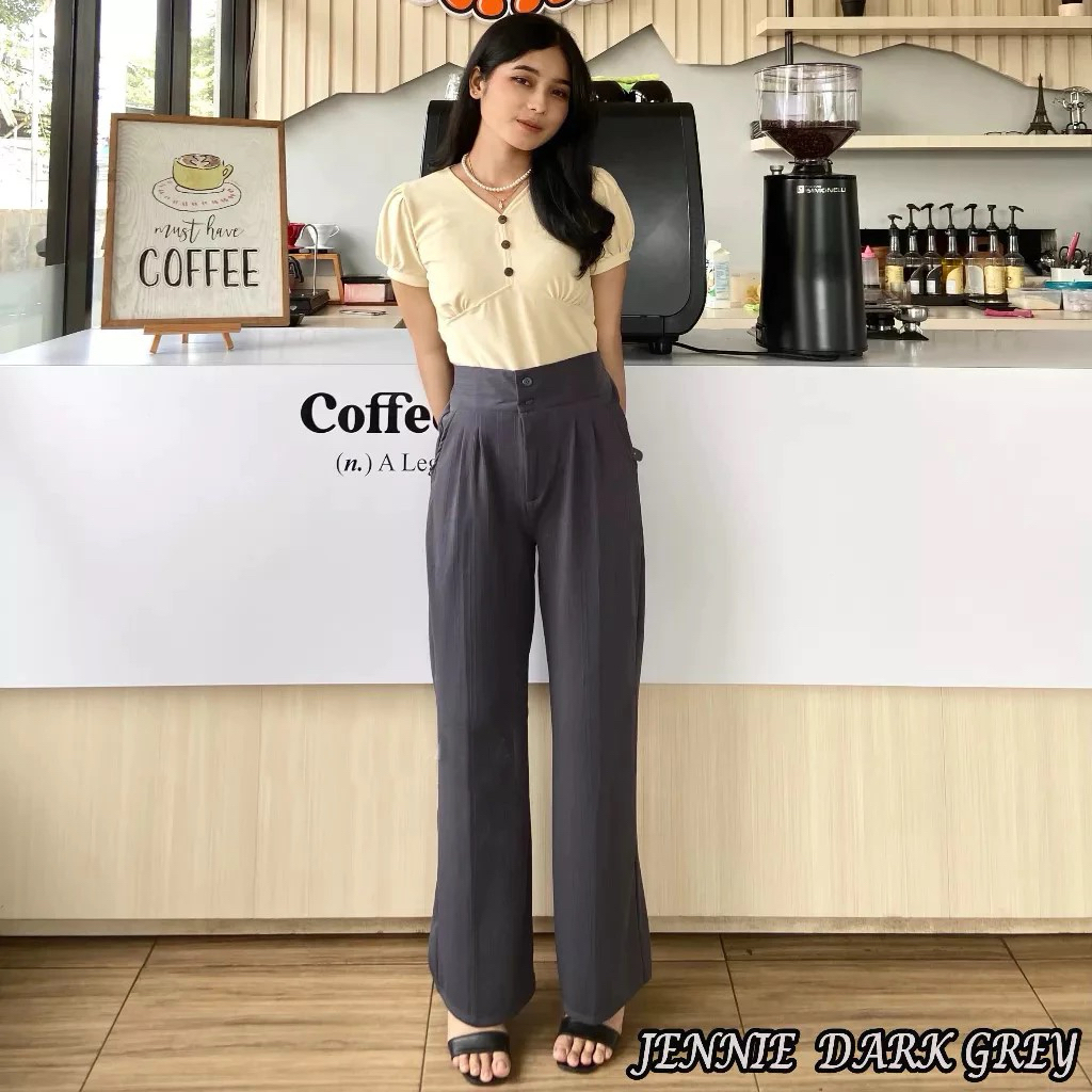 Yulian - Jennie Knit Pants Celana kulot higwaist Knit Kancing Pants Cullote Celana Wanita Kekinian