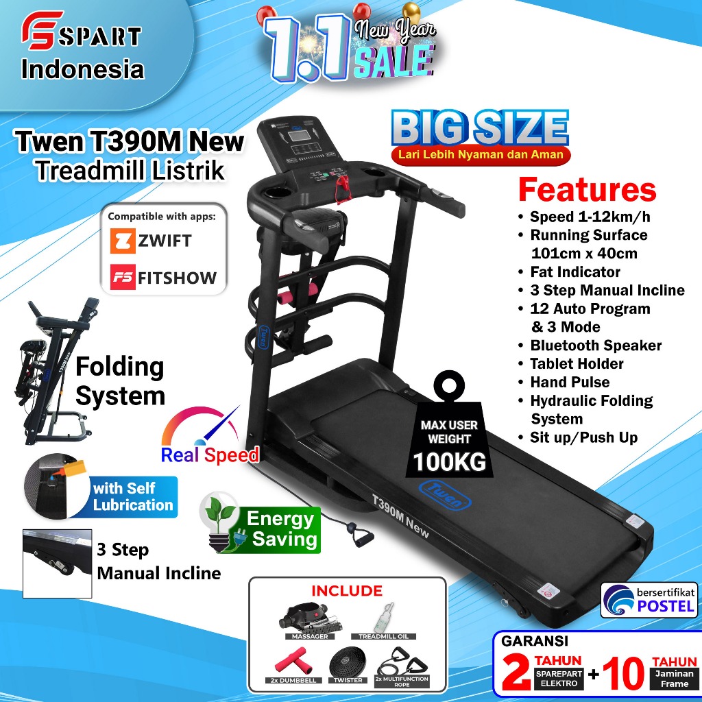 TWEN T309M T390M Treadmill Listrik Treadmill Portable Treadmill Multifungsi Treadmil Lipat Treadmill Electric Low Watt Alat Olahraga