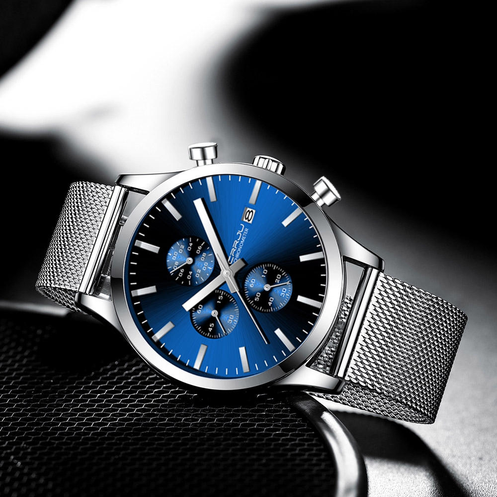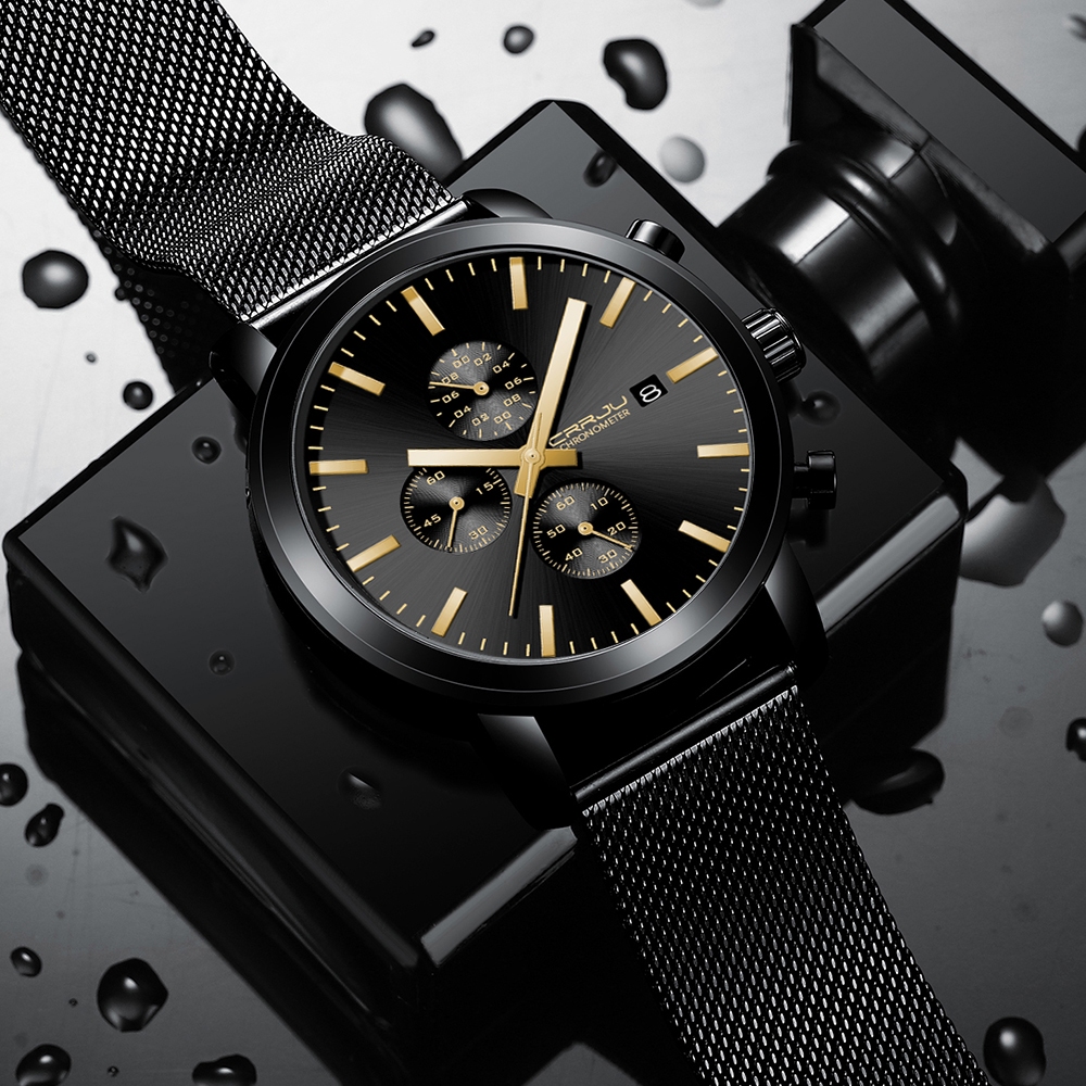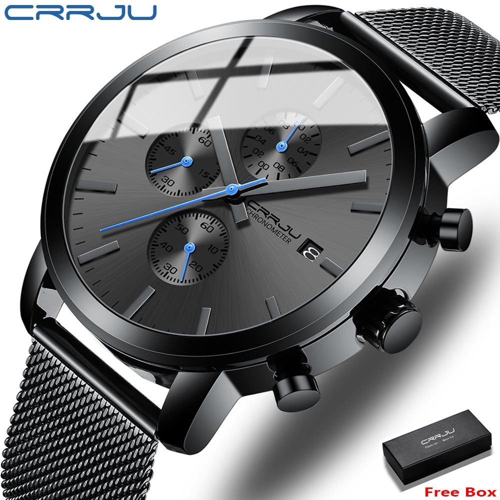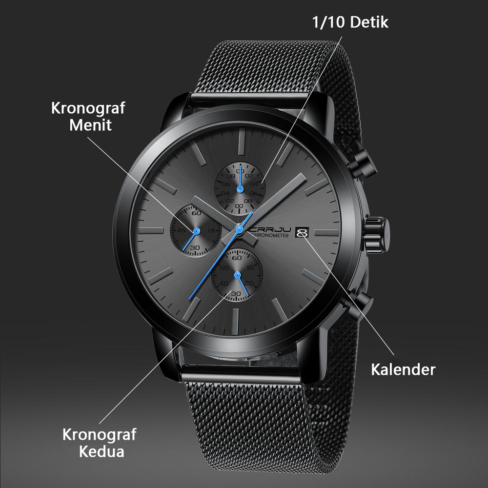 CRRJU Jam Tangan Pria Fashion Sport Quartz Mewah Anti Air+Kronograf Olahraga Stainless Steel Jam Tangan Cowok