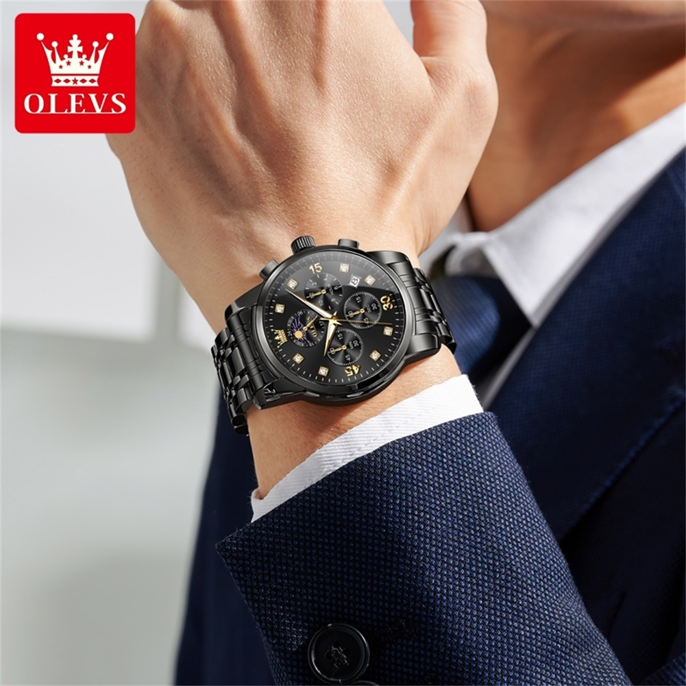 OLEVS Jam Tangan Pria Anti Air Stainless Steel Original Cowok Terbaru Kalender Waterproof Fashion Men Watch Model 3652