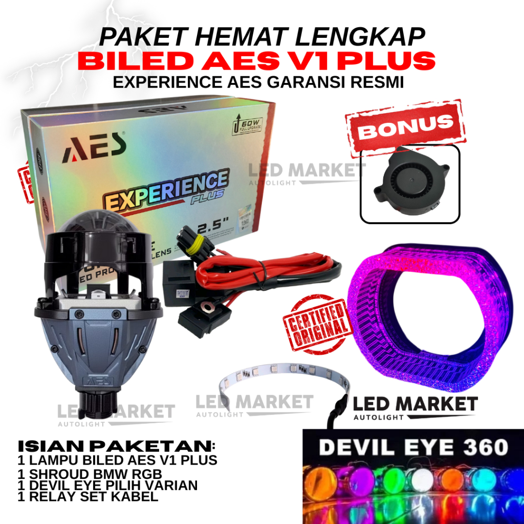 COMBO PAKET HEMAT BILED AES TURBO SE EXPERIENCE 60 WATT VERSION 1 V1 PLUS TERBARU 2.5 INCH