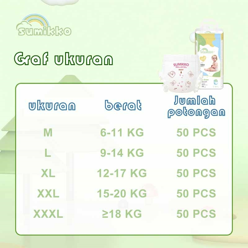Sumikko Pants Serap 1 Detik Tape Popok Bayi Perekat M50/L50/XL50/XXL50/XXXL50