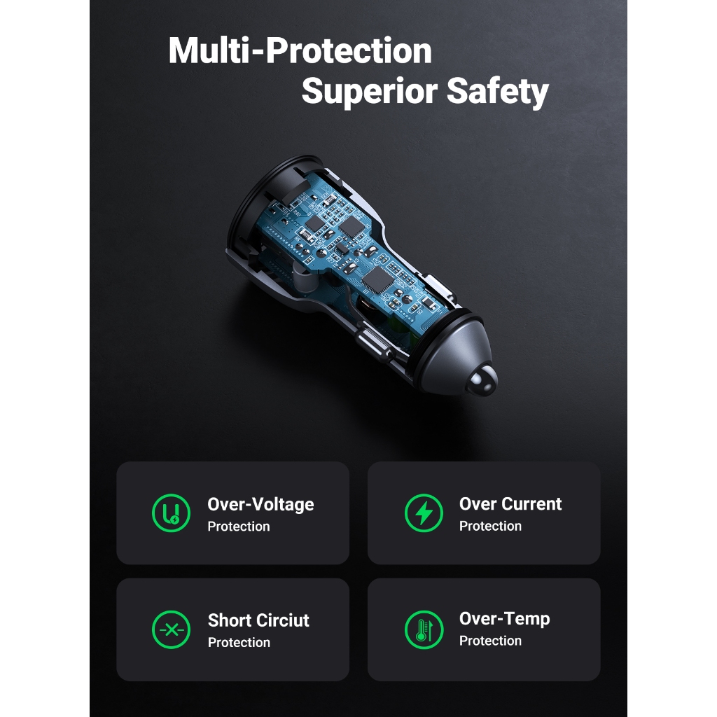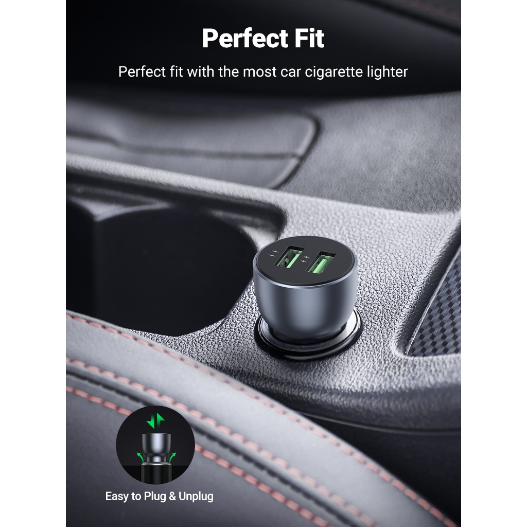 Ugreen Car Charger Mobil Dual Port Usb A & Type C Fast Charging 30W 63W 145W