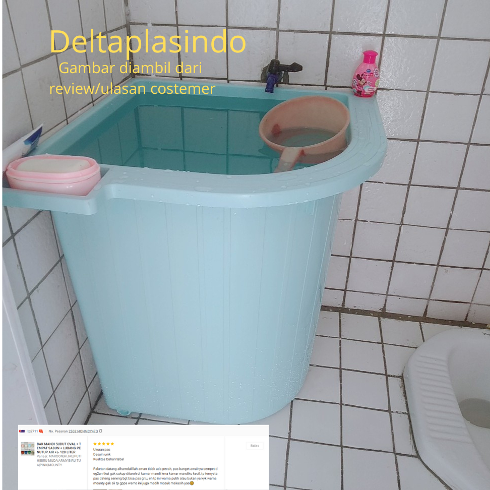 BAK MANDI SUDUT OVAL + TEMPAT SABUN + LUBANG PENUTUP AIR +\- 120 LITER