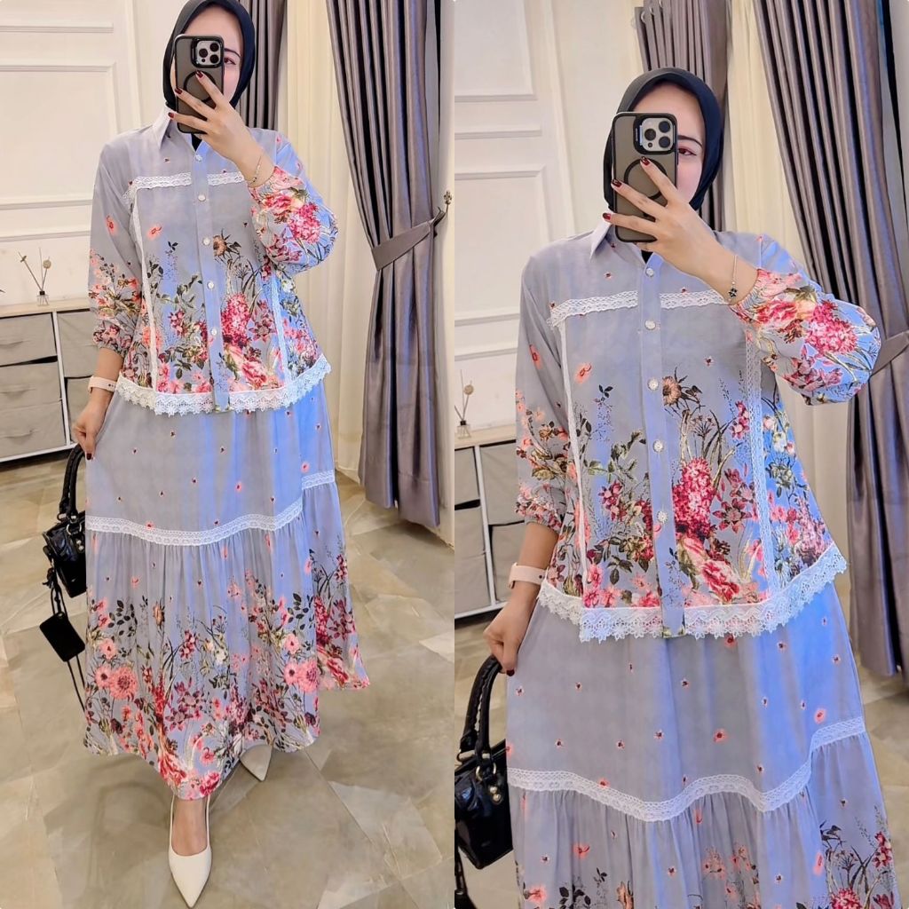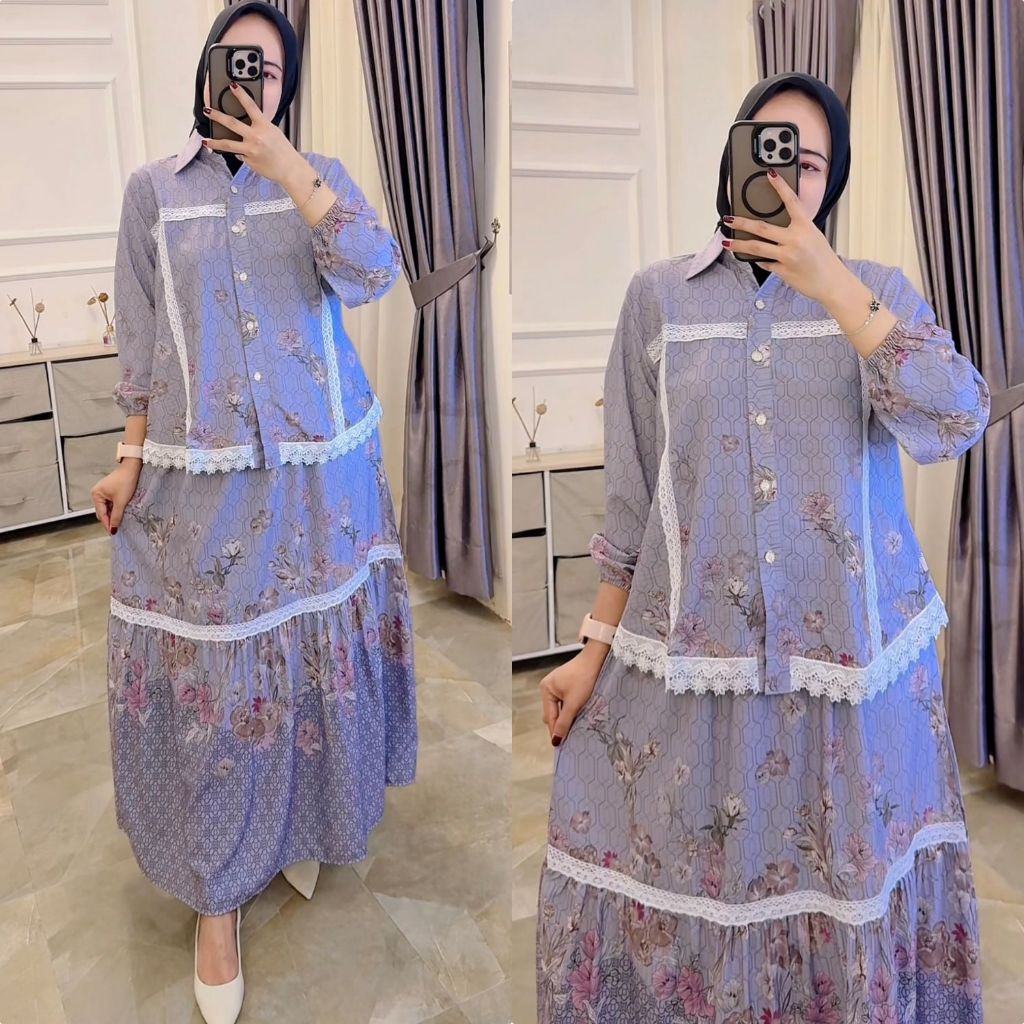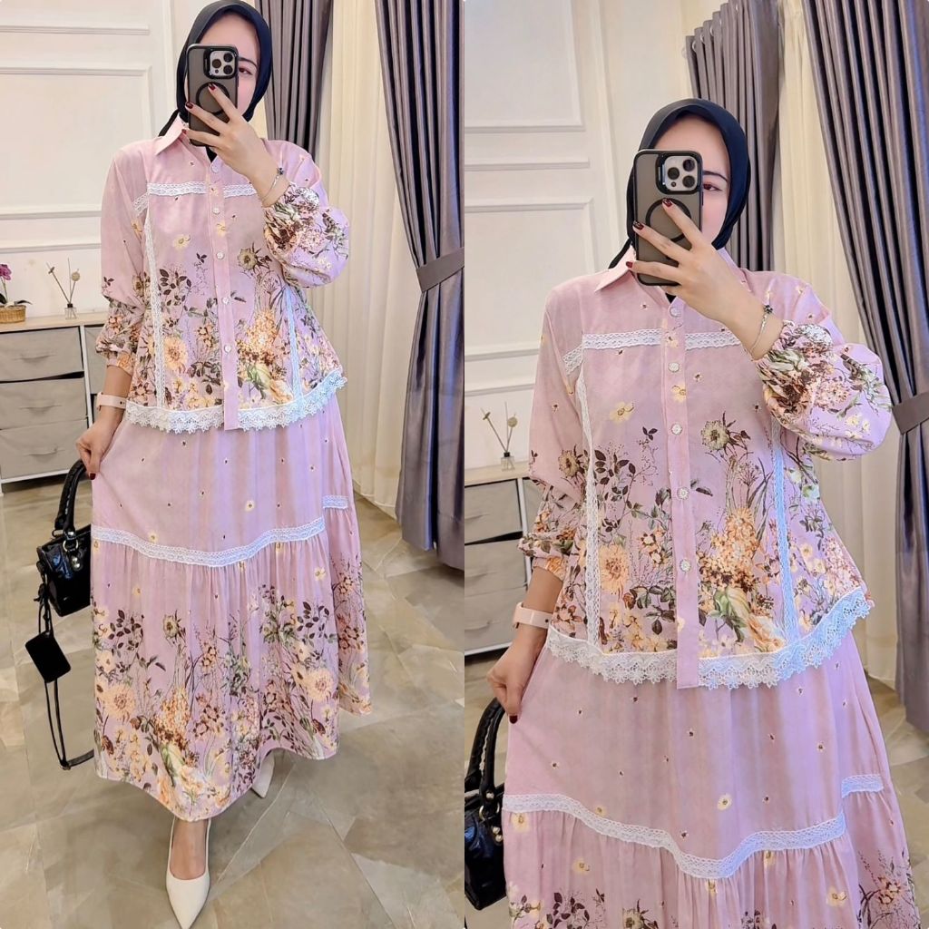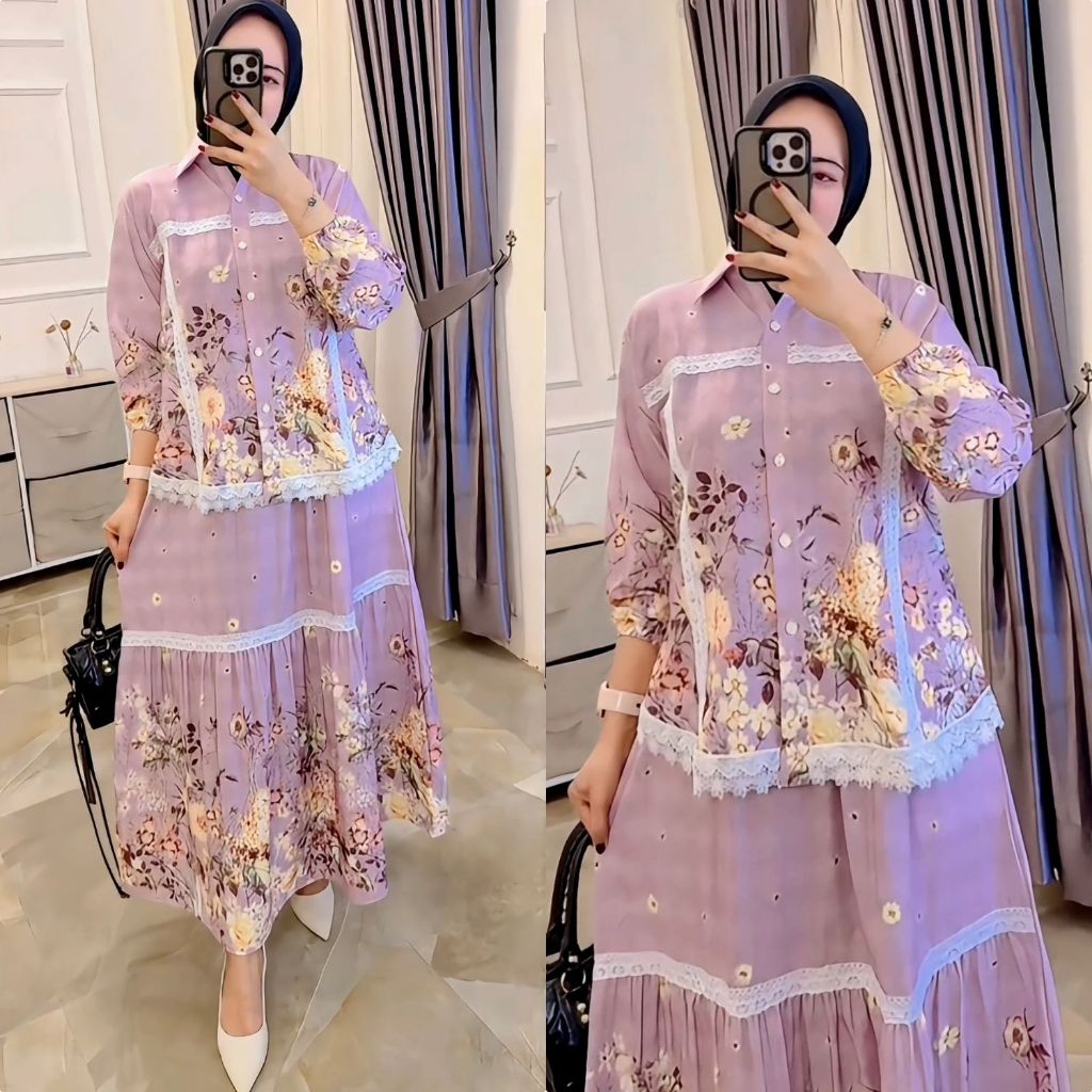 VANIA Coconici C One Set Setelan Rok Tingkat Ruffle Atasan Blouse Wanita Coquette Aesthetic Casual Korean Style Pastel R