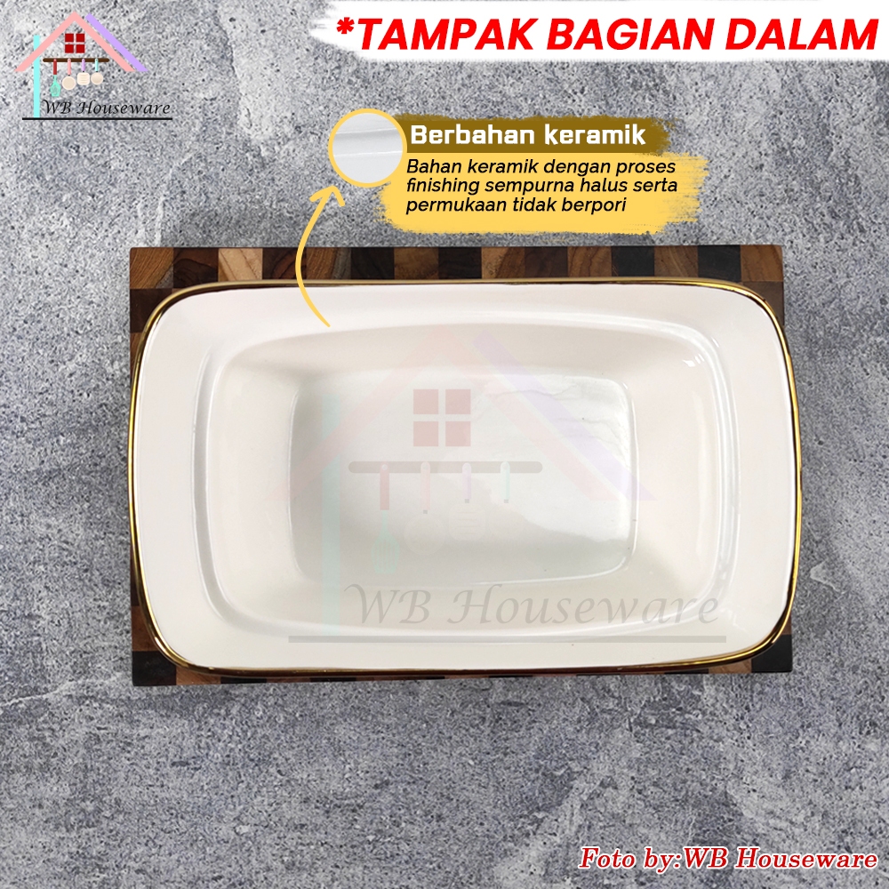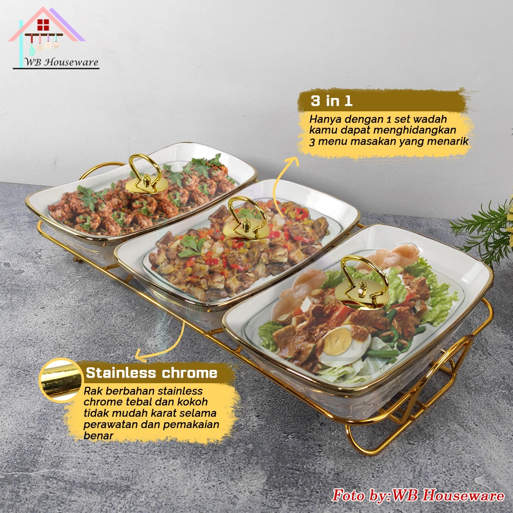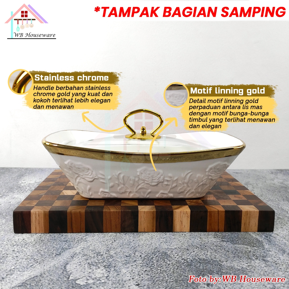 FIORENZA 7pcs prasmanan set segi + tutup + rak motif linning gold deluxe series keramik LGM-988GL / premium casserole set with rack / food warmer