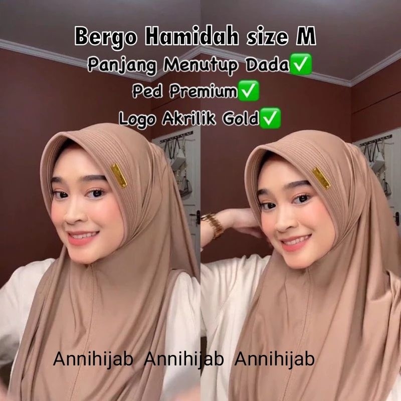 PAKET HEMAT (50 RIBU 5 PCS) HIJAB SPORT BERGO HAMIDAH ORI BY ANNIHIJAB LABEL AKRILIK UKURAN L