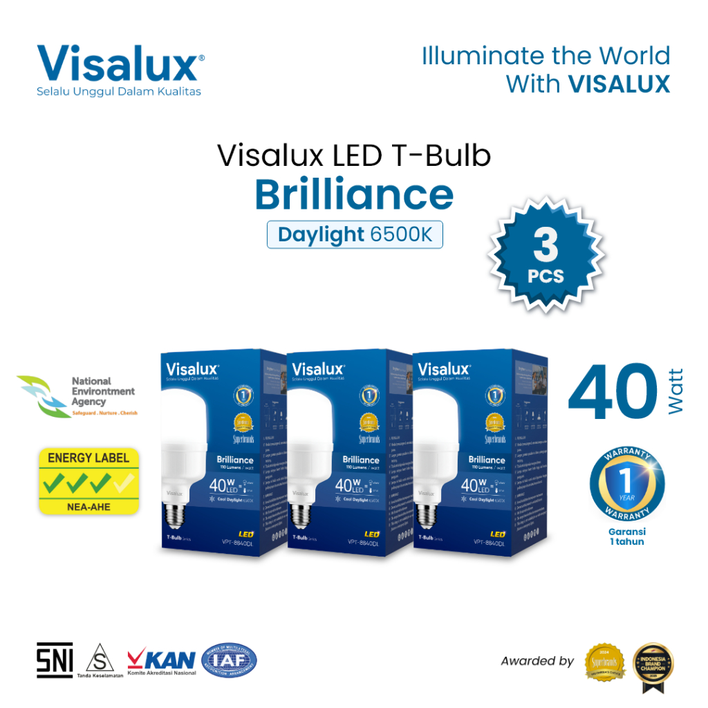 Visalux Lampu LED T-Bulb Brilliance 6500K Daylight Putih 40W - Bundling Paket 3 pcs (BRI-VPT8840DL)