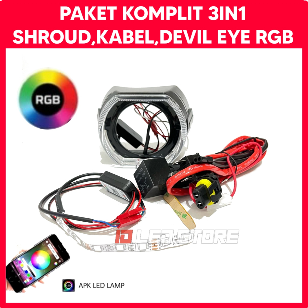 PREMIUM PAKET HEMAT COMBO MURAH 3IN1 RGB SHROUD BMW KLASIK BLACK HOUSING 2.5 INCH + KABEL SUPER RELAY SET BILED