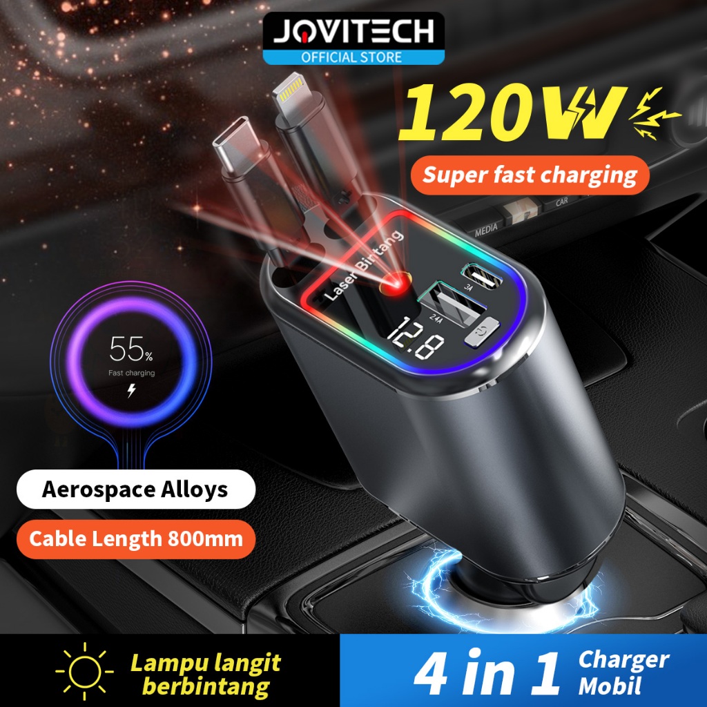 Jovitech Cc30 4In1 Car Charger With Star Light Colokan Mobil 4 Ports Pd Retractable Led Pd 120W Usb Type C