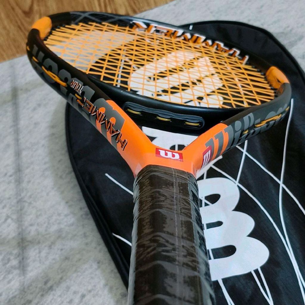 Raket Tenis Dewasa Wilson Hammer Tour Carbon Senar Oren Siap Pakai Ada Tas Free Grip