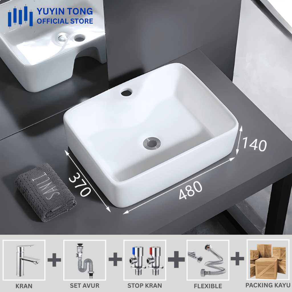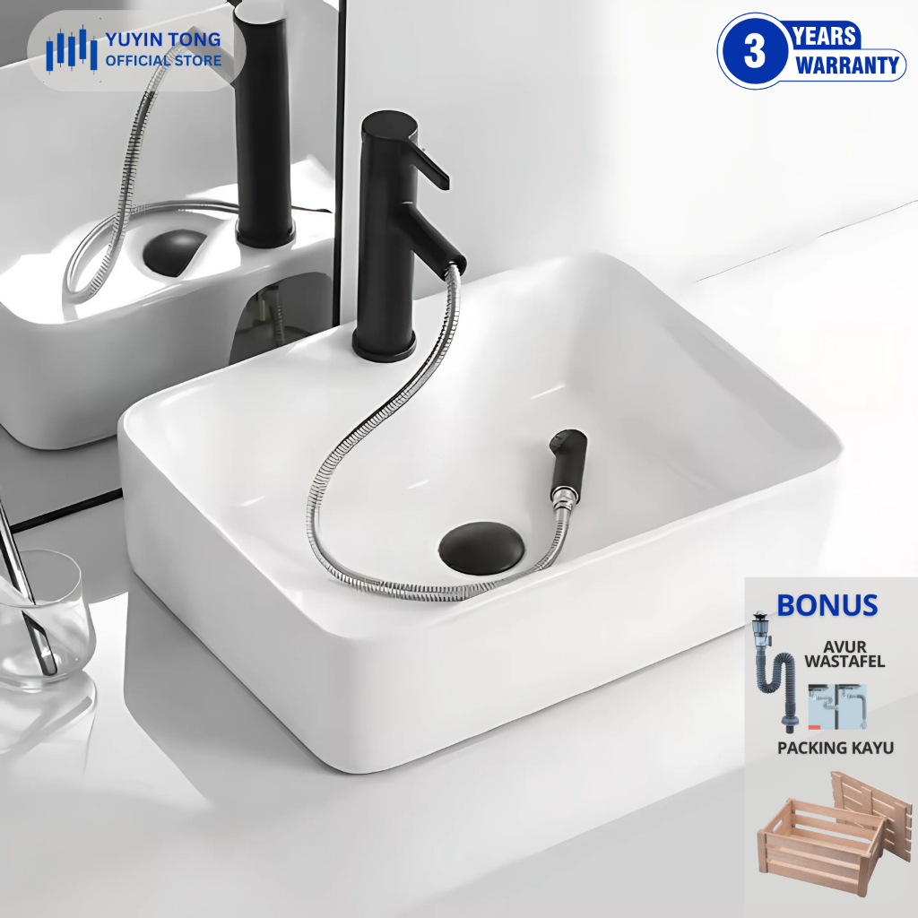 Wastafel Meja Free Kran Set/Selang/Afur/Packing Kayu Washtafel Cuci Tangan Minimalis Tempat Cuci Tangan free Packing Kay