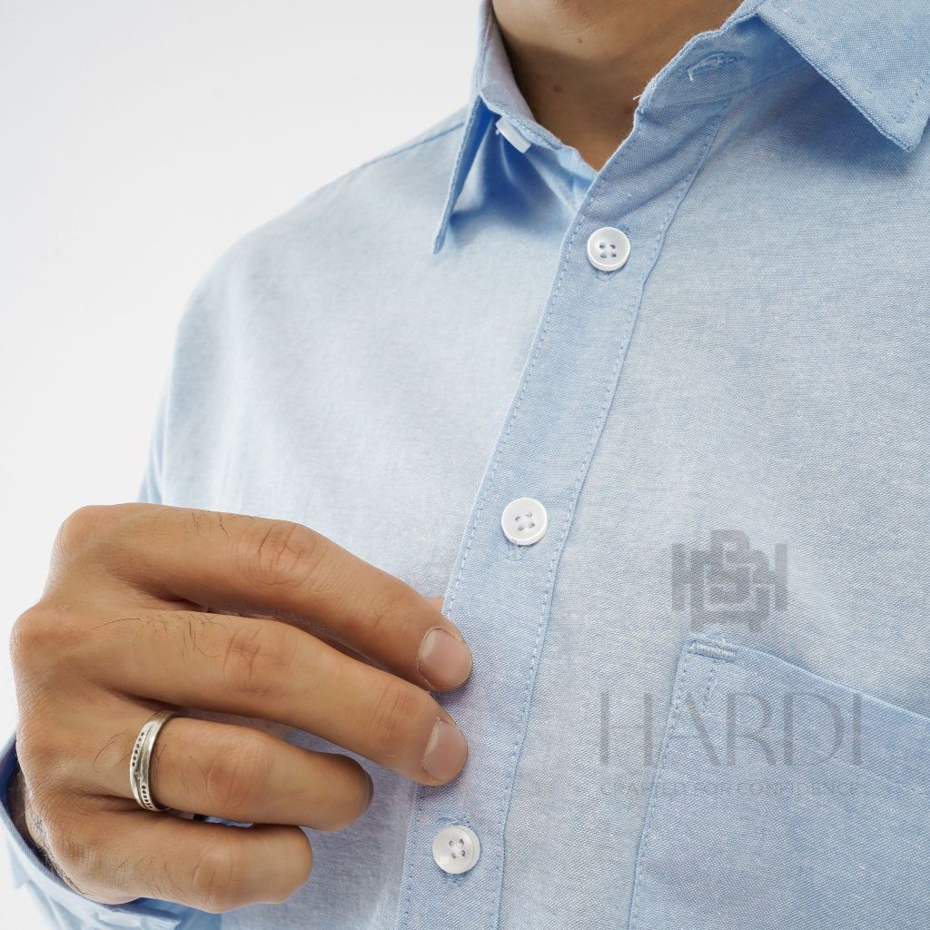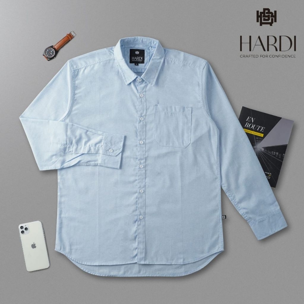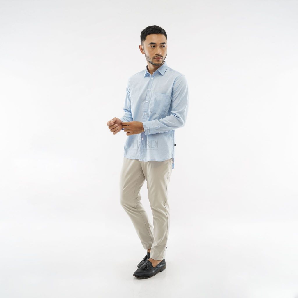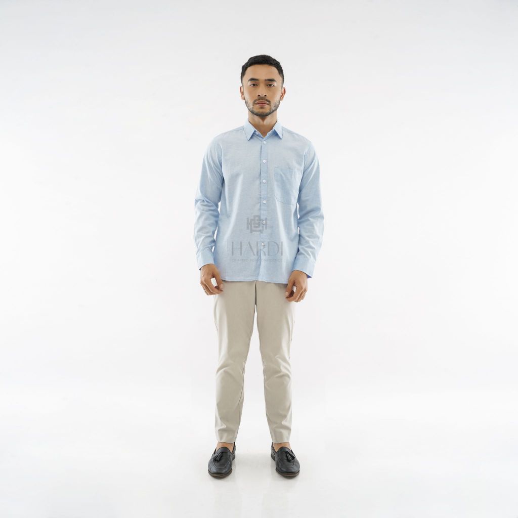 Hardi Everyday Kemeja Pria Lengan Panjang Biru Muda Single Pocket Polos Kasual Kantor Harian