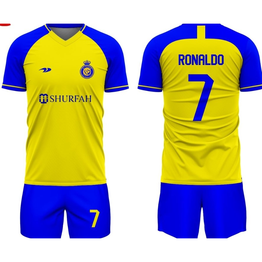 Jersey Kits Anak Atasan+Celana 1-12 Thn Al Nassr Home Ronaldo Full Printing / Baju Bola Anak / Stlan Futsal