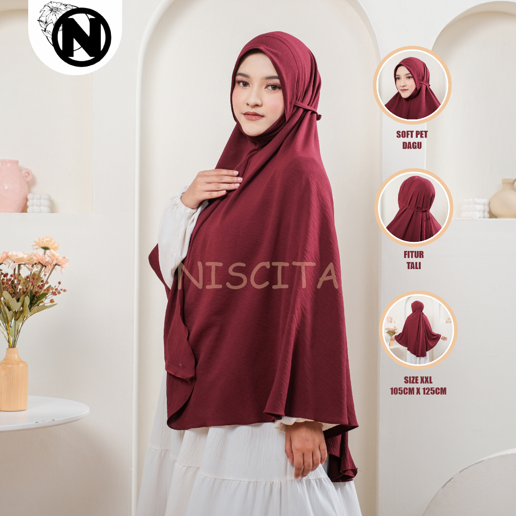 Bergo Dagu Malaysia Soft Pet Tali Jumbo Crinkle Airflow / Jilbab Malay Dagu XXL Tali SoftPad Crinkle