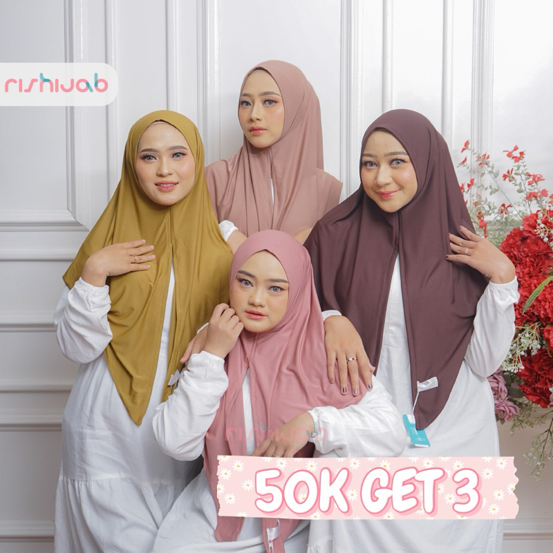 RIS HIJAB - PAKET BUNDLING 50RB DAPAT 3PCS JILBAB SEGITIGA JERSEY (BISA PILIH WARNA DI CHAT)