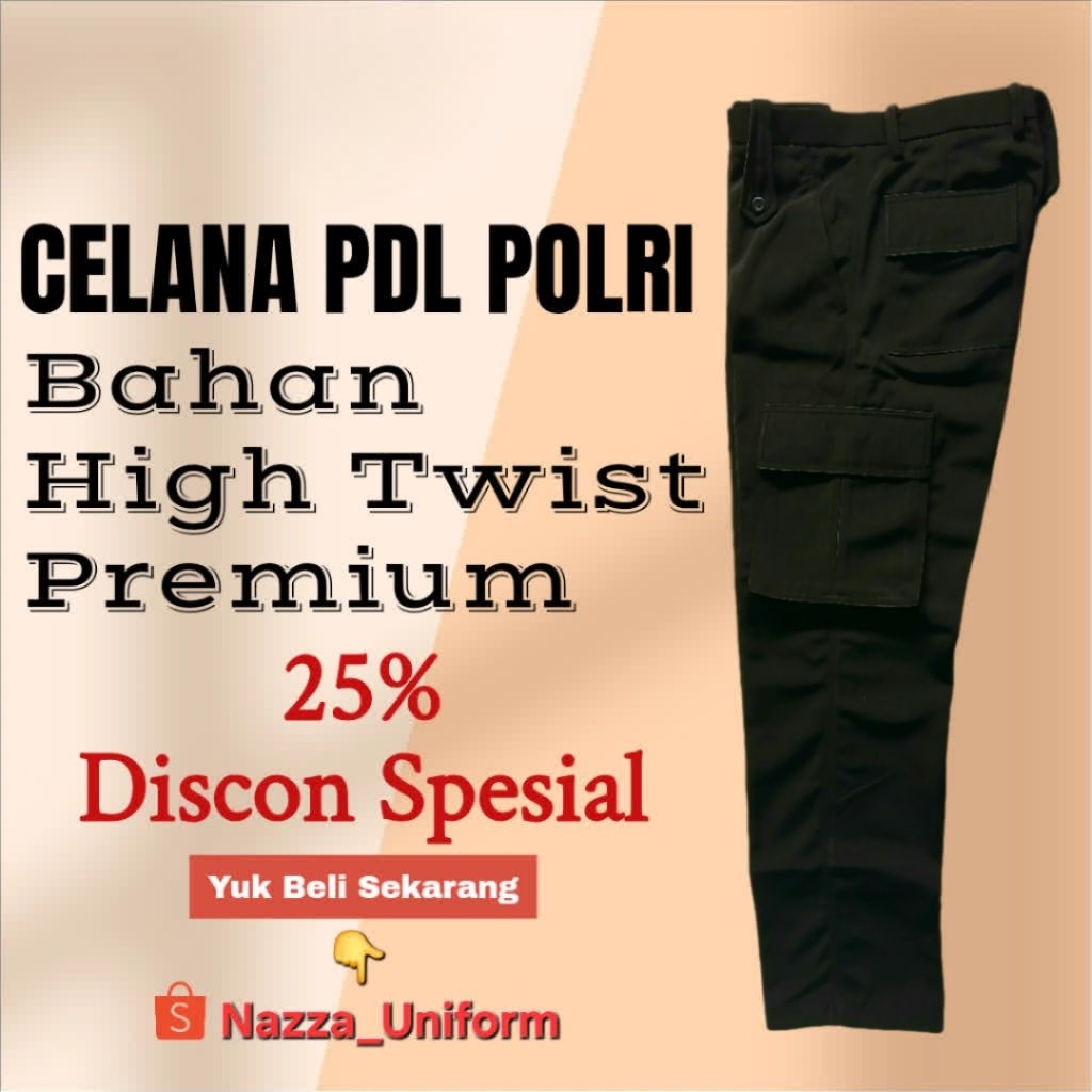 Celana PDL Polri Hitam Elegan High Twist 29-44