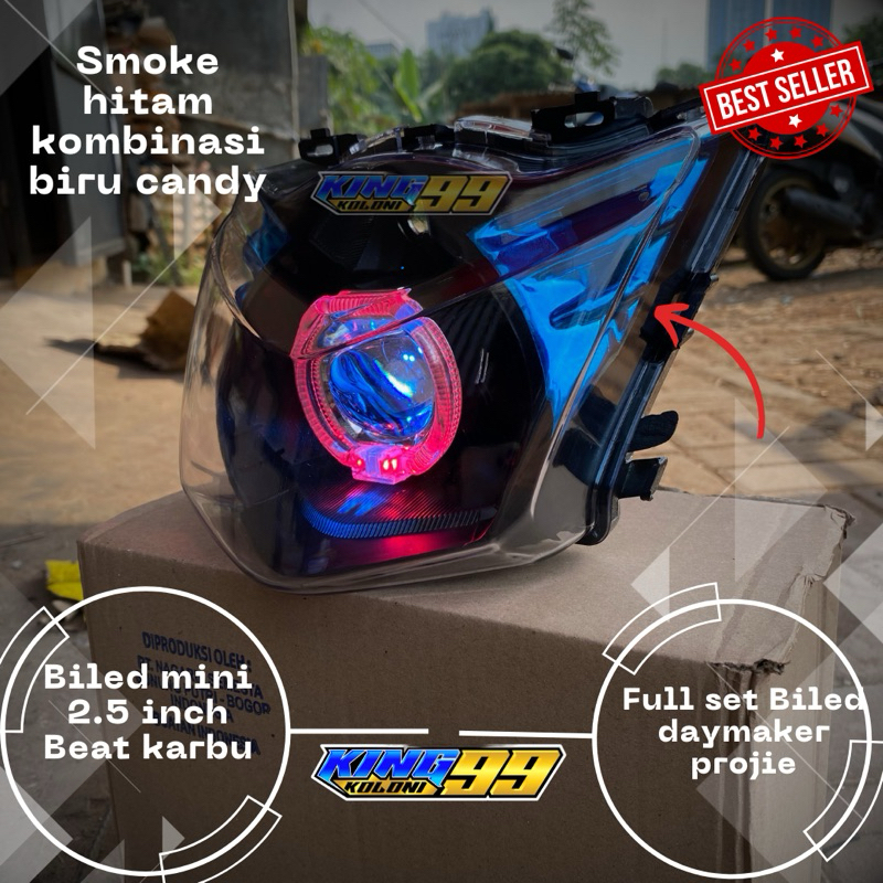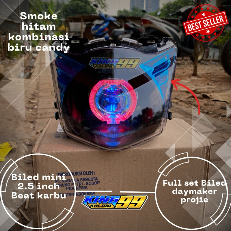 Biled mini beat karbu smoke hitam biru full set reflektor 2.5 inch