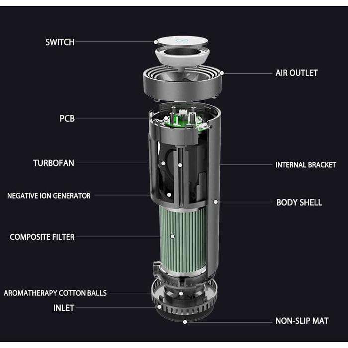 CAR AIR PURIFIER ION FILTER CARBON | PEMBERSIH PENJERNIH UDARA MOBIL - HITAM